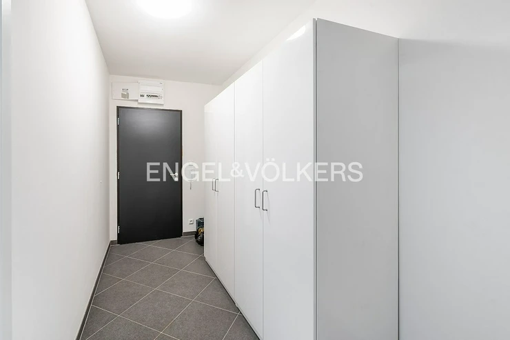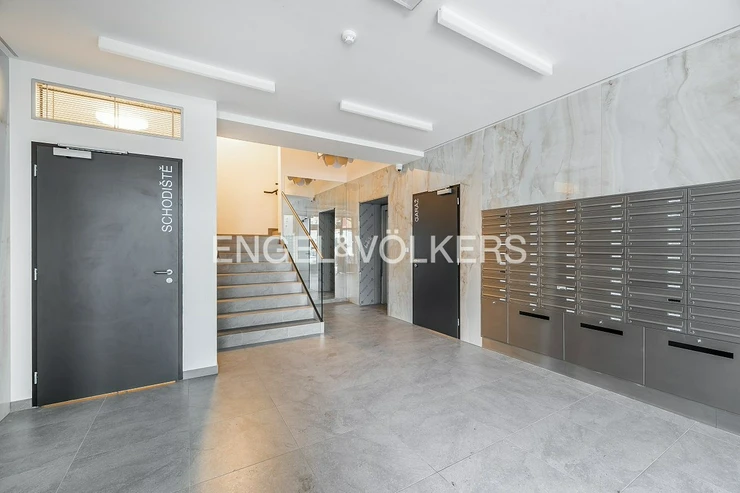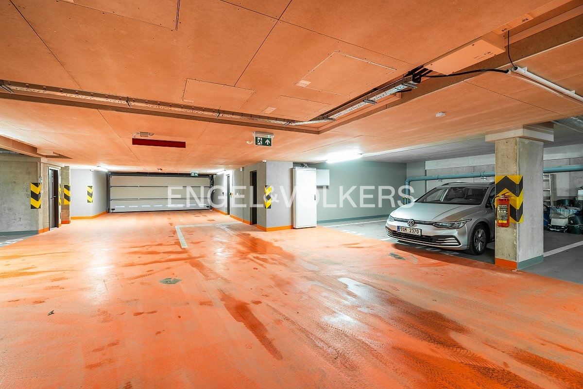 Covered parking space directly in the building for a fee of CZK 2,000/month + CZK 200 fees.