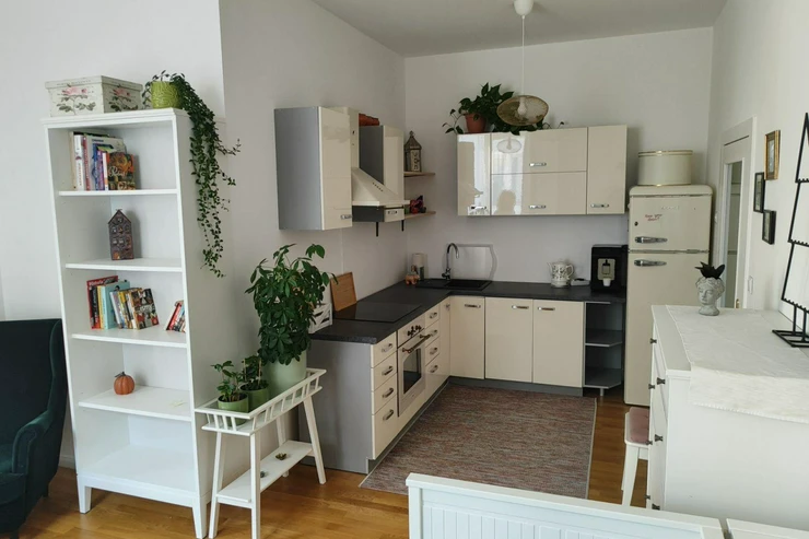 Stylový interiér je promyšleně navržen tak, aby poskytoval maximální pohodlí a funkčnost při zachování vzdušnosti prostoru. Byt je plně vybaven vším potřebným pro komfortní a bezstarostné bydlení.