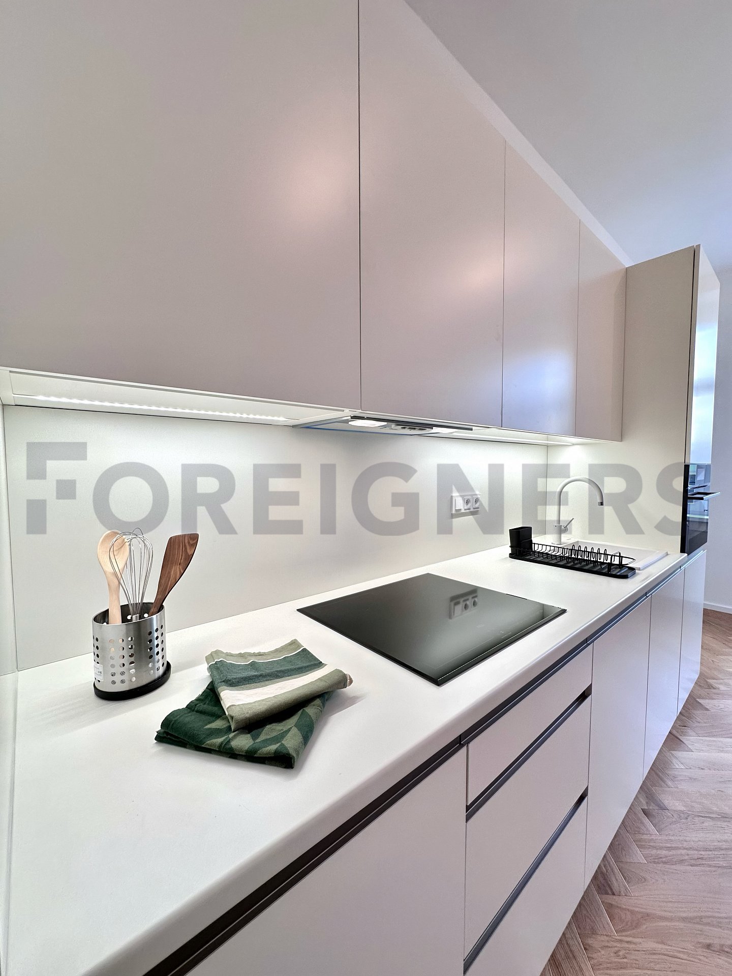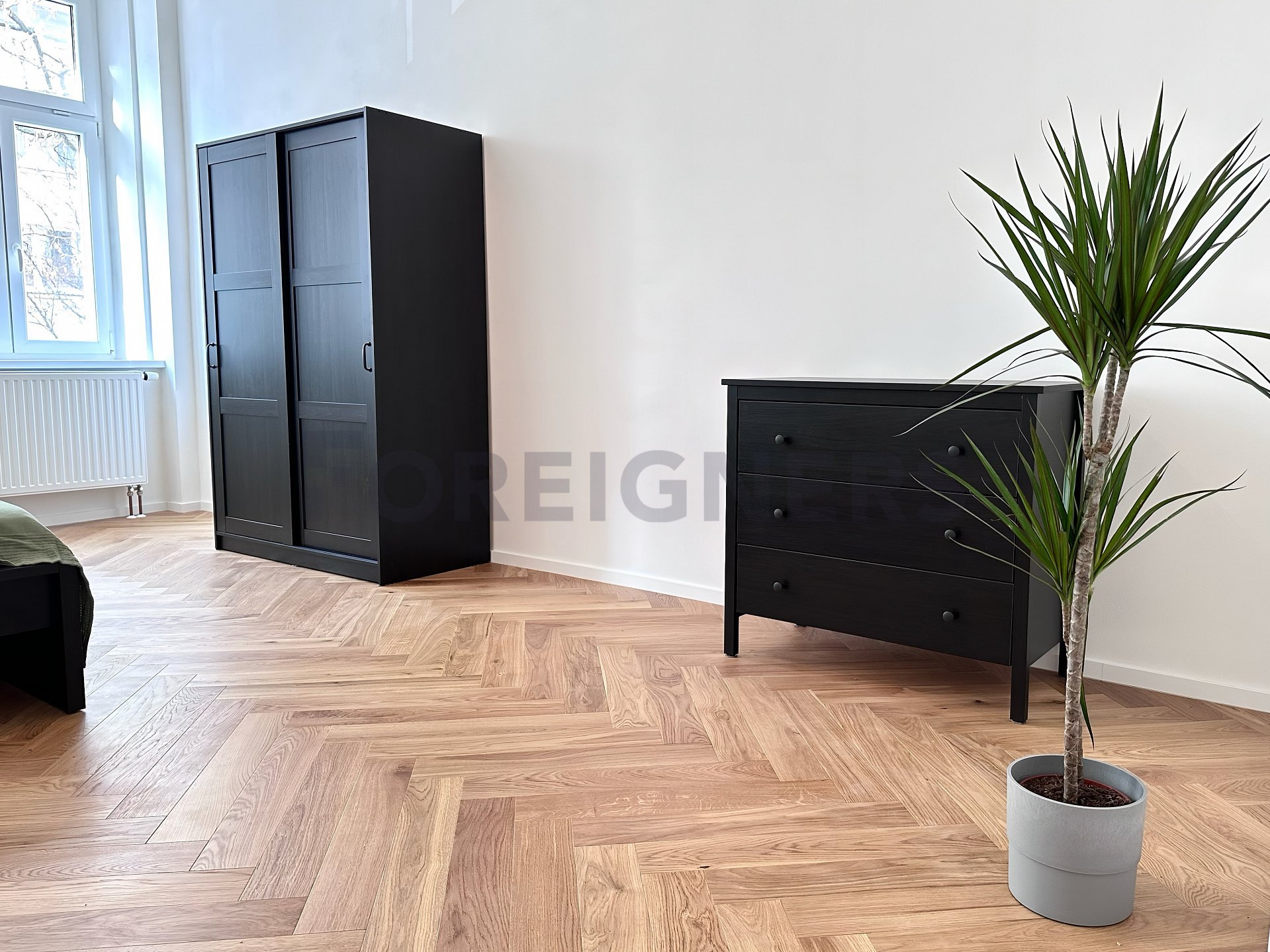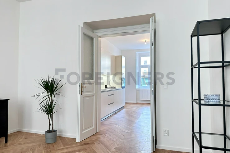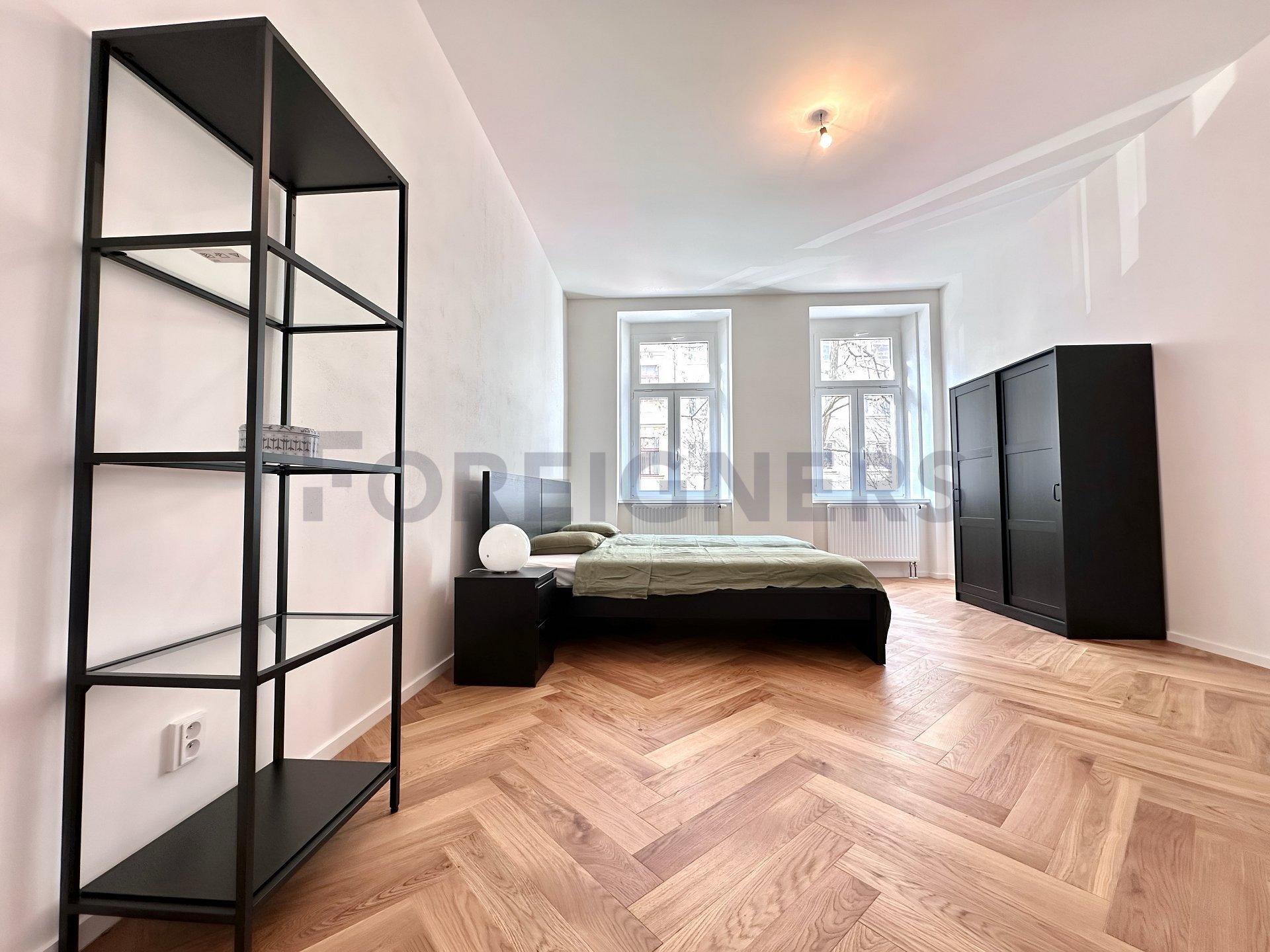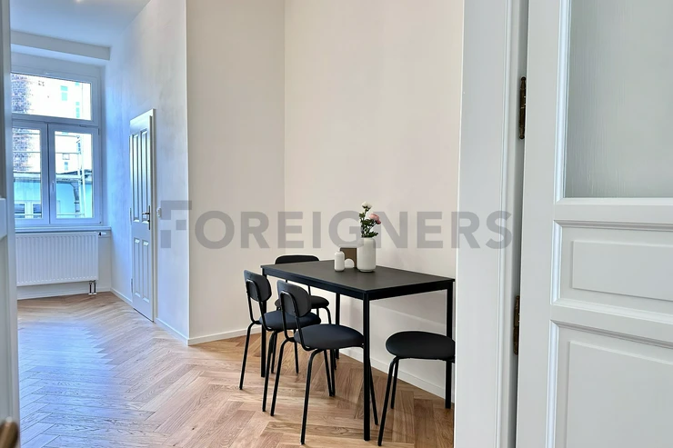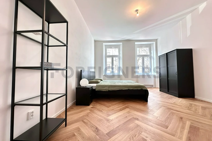 We offer for rent a brand-new, fully renovated bright 1-bedroom apartment (2+kk) with a total area of 45 m², located on the 1st floor of a building without an elevator in the quiet Velehradská Street. The apartment has undergone a thorough renovation and provides modern, tasteful and very comfortable living.