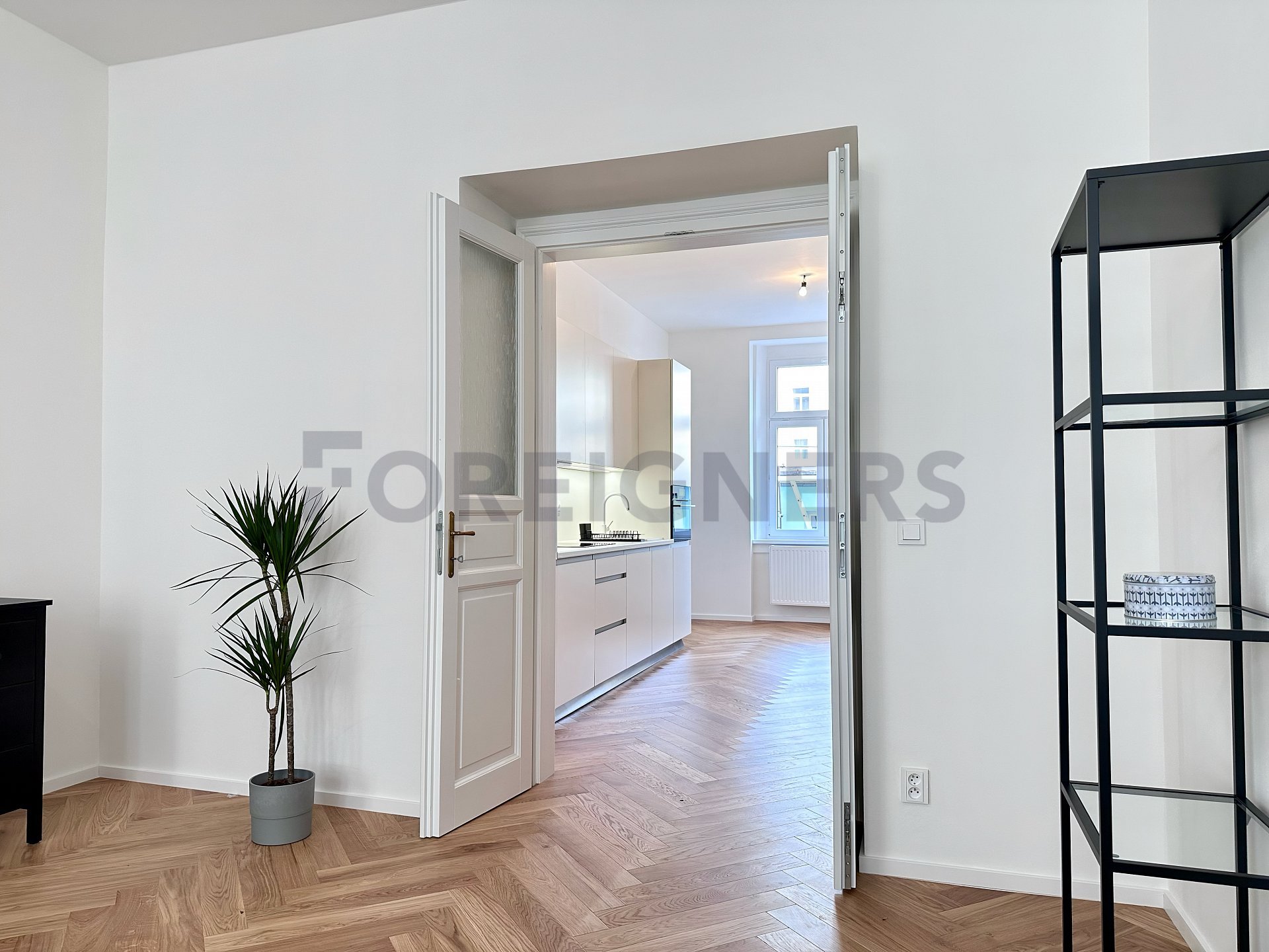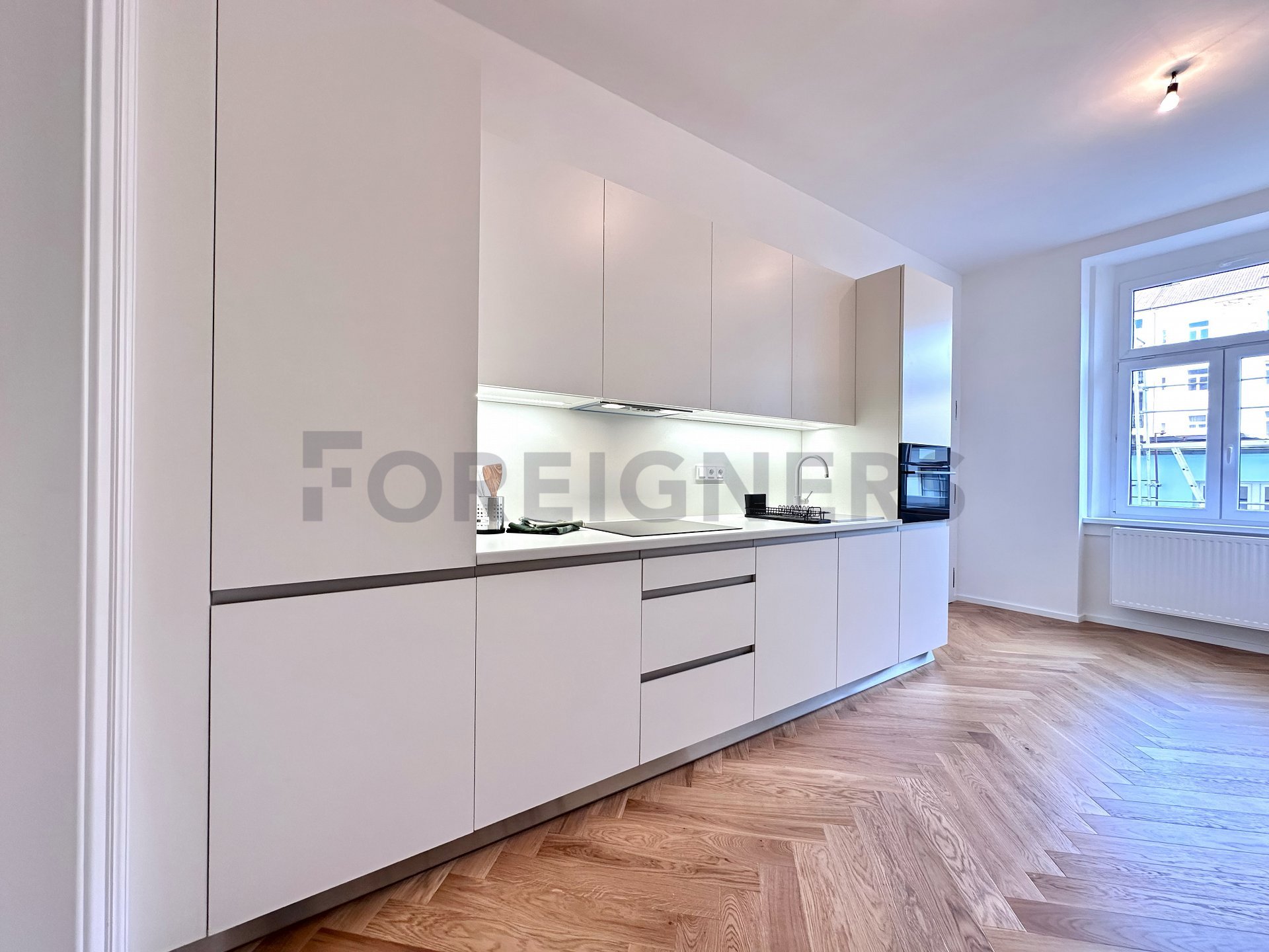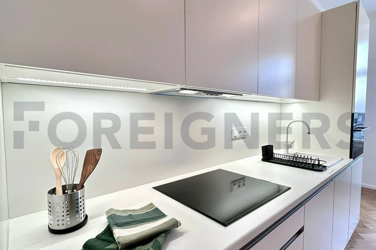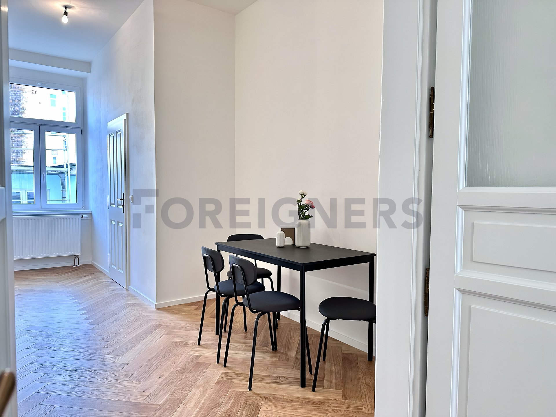 We offer for rent a brand-new, fully renovated bright 1-bedroom apartment (2+kk) with a total area of 45 m², located on the 1st floor of a building without an elevator in the quiet Velehradská Street. The apartment has undergone a thorough renovation and provides modern, tasteful and very comfortable living.
