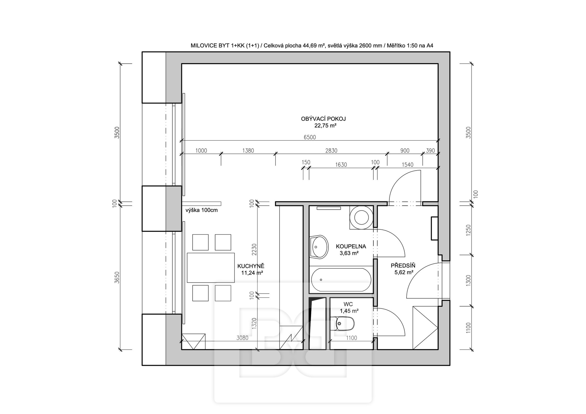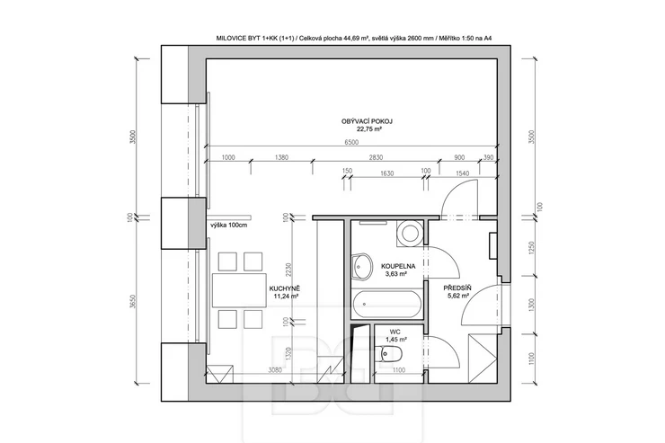 We offer for rent a nice, bright and spacious studio apartment (1+kk, modified to 1+1) with a total area of 44.7 m², located on the 5th floor in Milovice, in a residential area on Višňová Street, along Armádní Street and opposite the kindergarten MŠ Sluníčko.