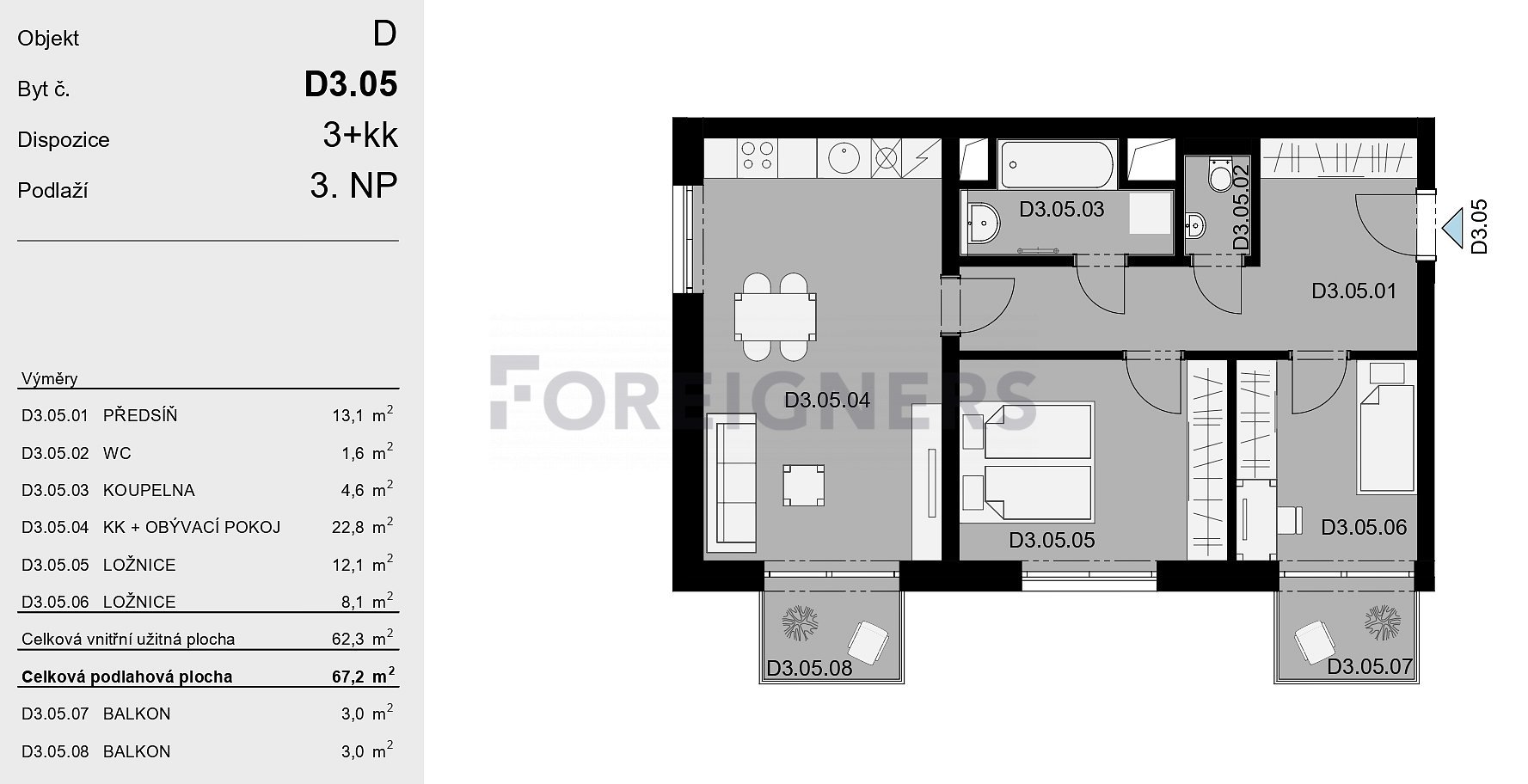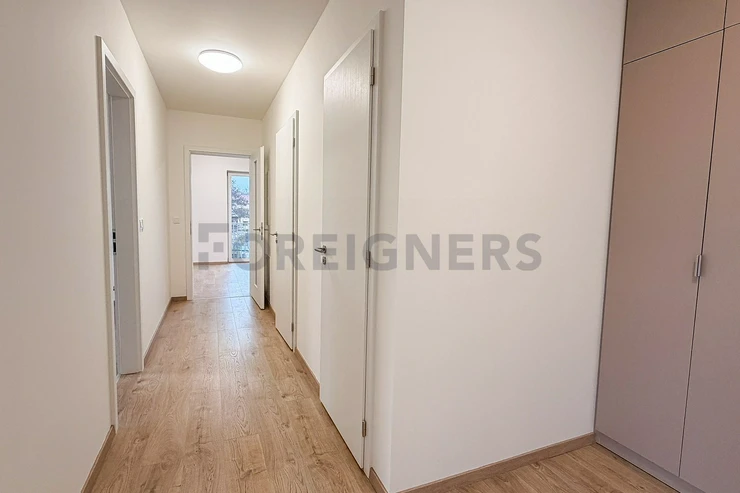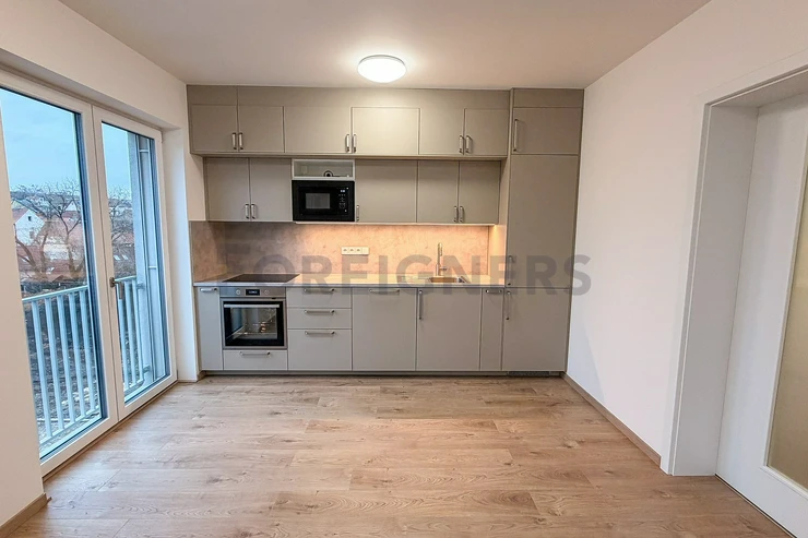 We offer for rent a bright and modern 2-bedroom apartment (3+kk) with a total floor area of 68 m², located in a newly completed residential building with an elevator in the very center of Hostivice. The apartment includes two balconies, a garage parking space, and a cellar storage unit.