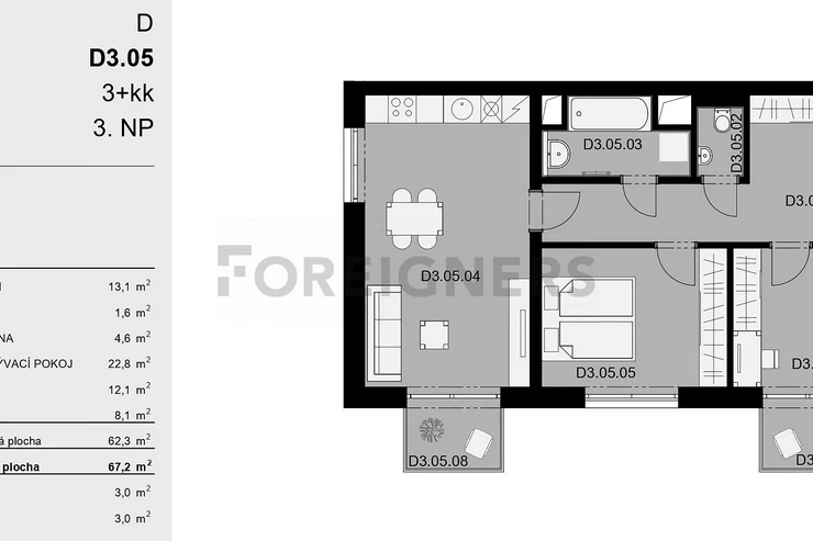 The apartment is an ideal choice for those looking for modern, comfortable living in a quiet environment with excellent access to Prague.