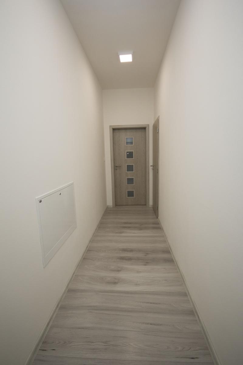Byt je prosluněný, světlý a prostorný, s moderními plovoucími podlahami a dlažbou, které zajišťují snadnou údržbu. Centrální podlahové vytápění poskytuje celoroční komfort a příjemnou teplotu v bytě. Byt je vybavený kuchyňským koutem a dostatkem úložného prostoru, díky čemuž je bydlení praktické a pohodlné.