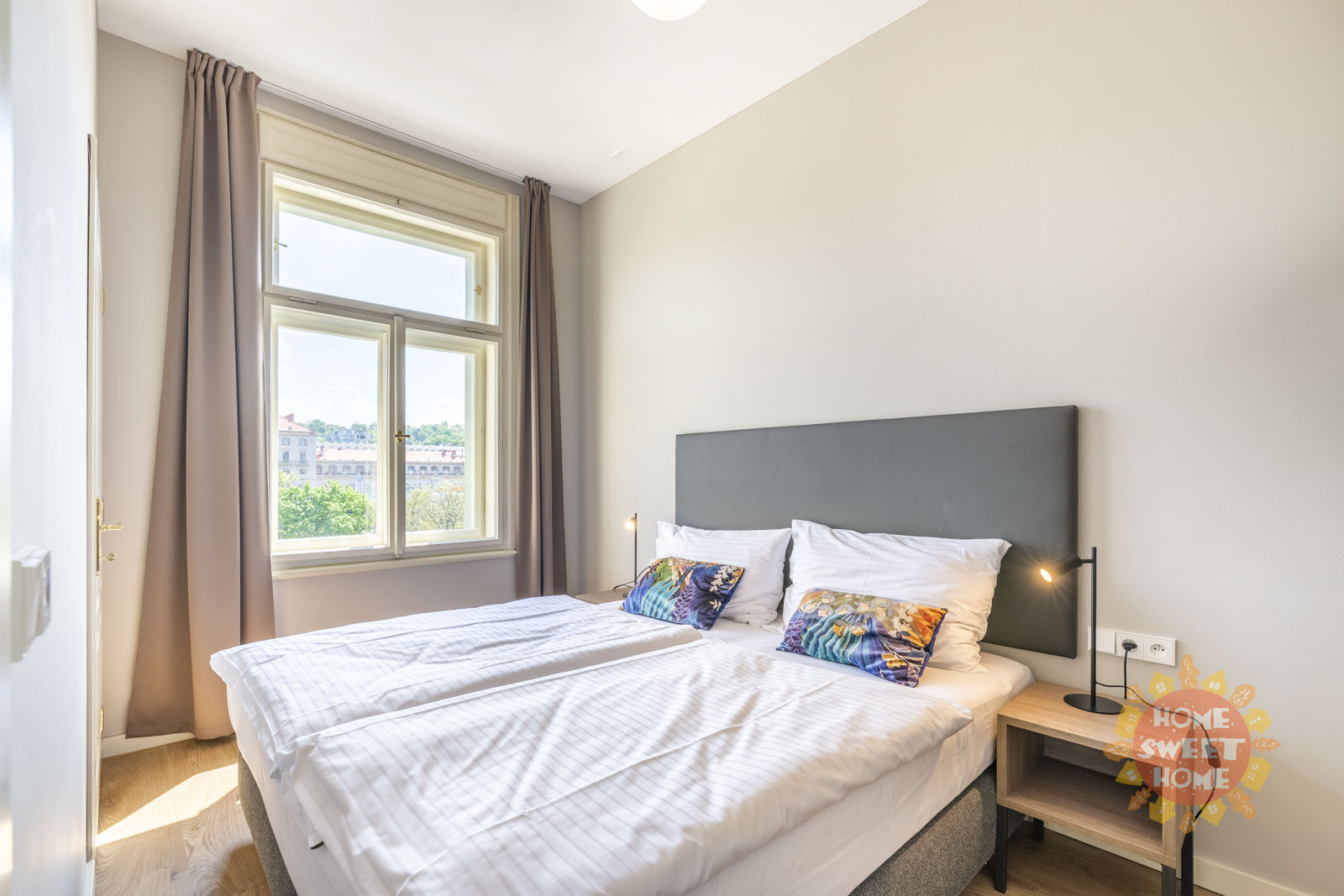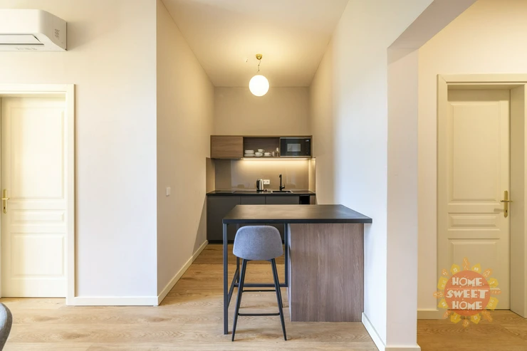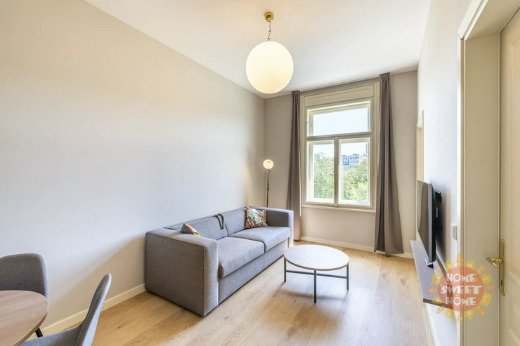 Furnished modern apartment 2+kt after complete reconstruction with a total area of 43 square meters is located on the fourth floor of a brick building with an elevator in a newly renovated building from 2021 in Opletalova Street, New Town. Housing is located in a very popular location about 100 meters from Wenceslas Square.