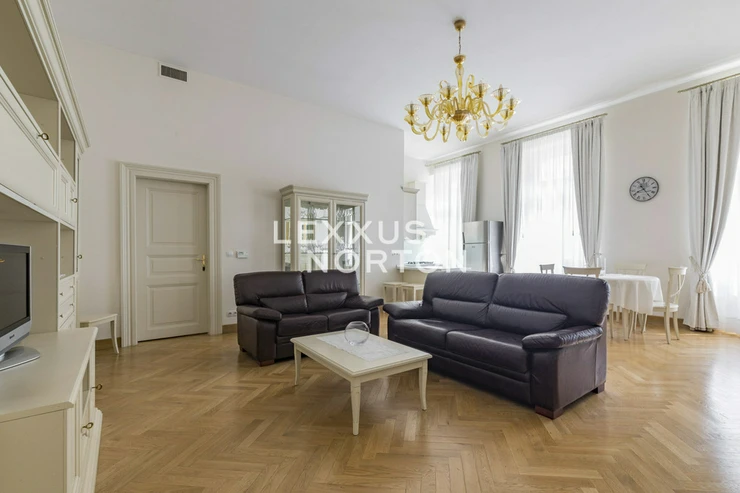 The highly sought-after locality of Vinohrady is only a few minutes’ walk from namesti Miru and offers an above-standard, luxurious, furnished two-bedroom apartment to let with 109 sqm of floor space at an exclusive address - Italska ulice. The nearby Riegrovy sady and Havlíckovy sady parks increase the locality’s attractiveness.On the first floor of the renaissance house with a common garden and a swimming pool - there is situated this unique, furnished, two-bedroom apartment for rent that has a living area totalling 109 sqm. Impressive interior of the property consists of a living room with am equipped kitchen. Then 2 bright bedrooms and 2 elegant bathrooms. Possibility of renting a garage parking space for CZK 5,000 per month + VAT. Illustrative photo. The apartment is furnished and equipped with kitchen appliances (ceramic hob, oven, refrigerator, freezer, microwave oven, and dishwasher), one bathroom with a bathtub and another with a shower, washing machine, dining set, sofa set with coffee table, beds, and wardrobes.A property in Vinohrady, one of the most desirable Prague locations. It has a great position where everything you need can be found within a 10-minute walk. The area has excellent transport links - namesti Miru metro station, several tram lines and buses. You can get to Vaclavske namestni in just aprox. 15 minutes by public transport. The road links are also good. The motorway ring road can be reached in just 15 minutes and Vaclav Havel Airport in 30 minutes by car. In the building's vicinity you can find complete civic amenities - a pharmacy, medical centre, post office, supermarkets, offices, banks, local shops, restaurants and bars. There are kindergartens, primary and secondary schools, a university, ISP/ River Side school / Prague British School and children's playgrounds nearby. You can use sady Svatopluka Cecha and Riegrovy sady with their beautiful views of Prague for leisure activities.An interested client is aware of the need to pay a commission totalling one month's rent plus VAT.If you are unable to view the property in person, we also offer you a video tour from the comfort of your home in real time via Messenger, WhatsApp and other communication platforms.