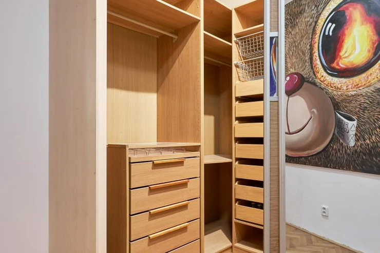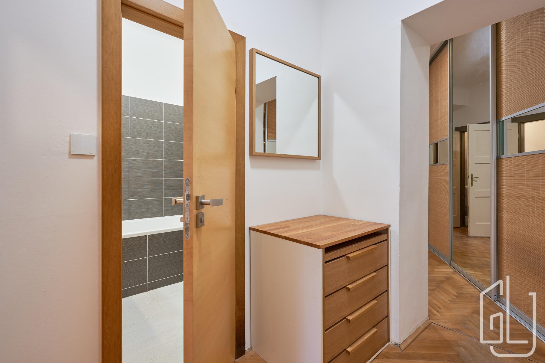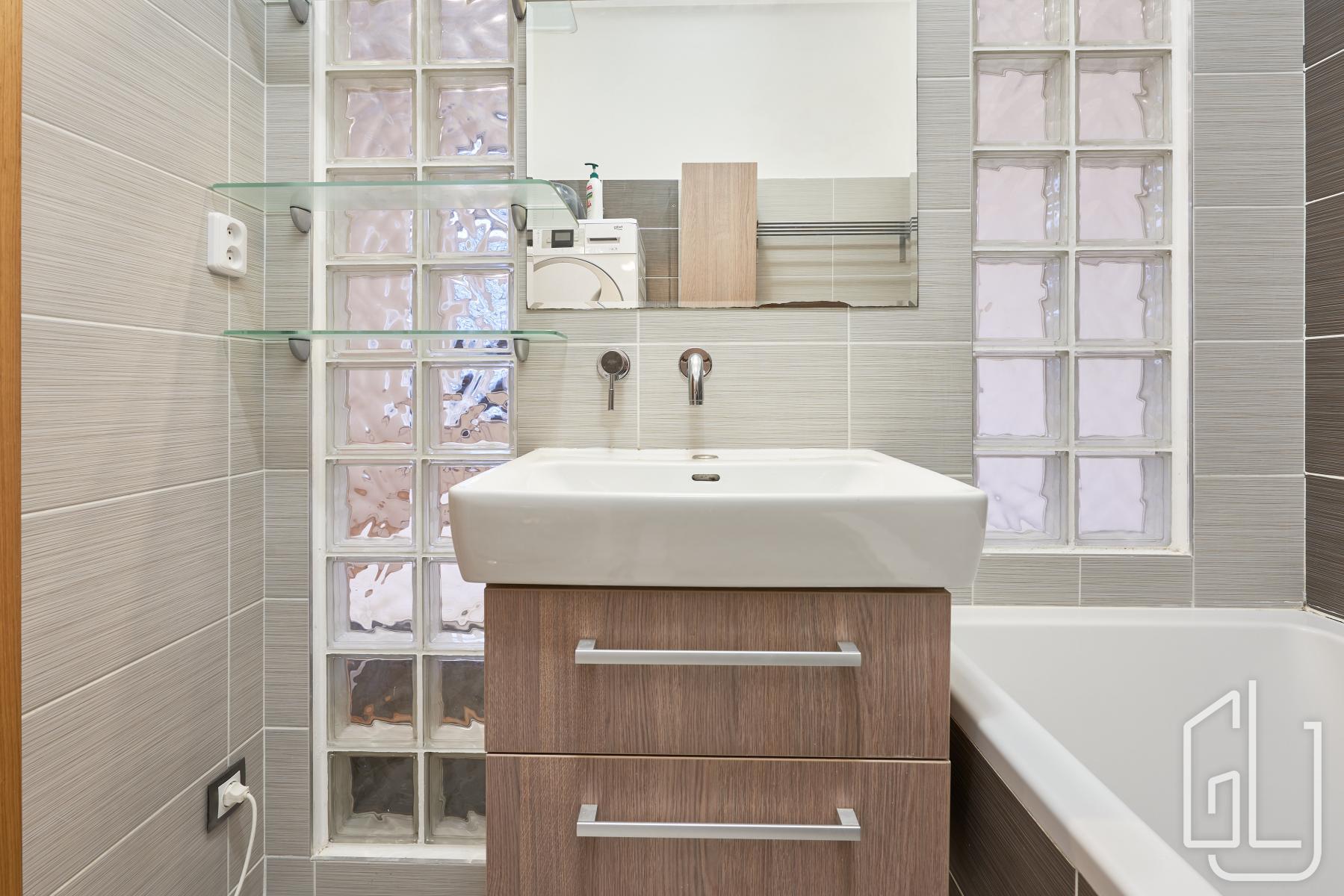 V bytě se dále nachází koupelna, samostatné WC, technická místnost a prostorná chodba s velkou šatnou, která nabízí dostatek úložného prostoru. Součástí vybavení je také pračka a sušička, elektrický bojler a vestavěné skříně.