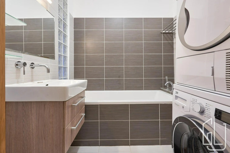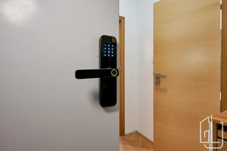 Dům je zabezpečen vstupem na kód a byt je vybaven chytrým zámkem. K dispozici je také sklep a společná sauna v domě.