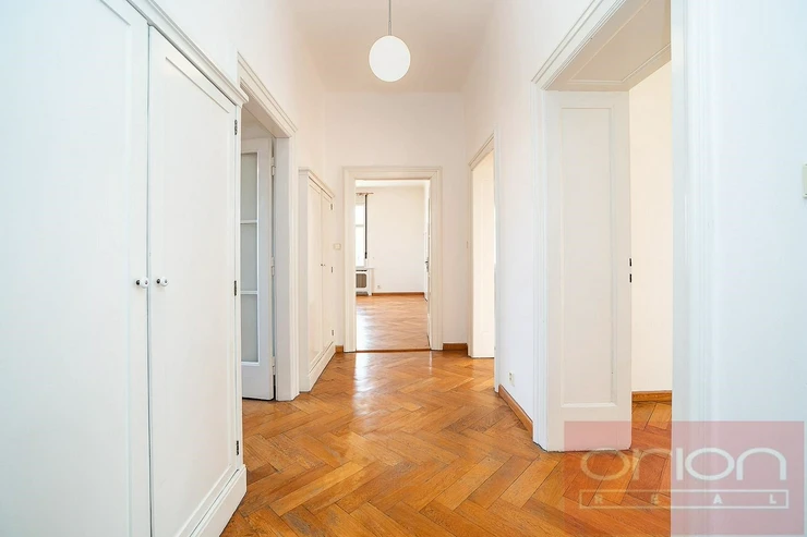 We offer for rent an exclusive unfurnished 4-bedroom apartment with a total area of 274 sqm and a terrace, situated on the 1st floor of a fully renovated representative Neo-Baroque villa in a prestigious residential area of Prague 6. The apartment features an entrance hall, a spacious reception room with access to a 26 sqm terrace overlooking a well-maintained garden, a generous living room with dining area, a fully fitted kitchen, four bedrooms, two bathrooms, a pantry, a laundry room with washing machine, and a guest toilet.