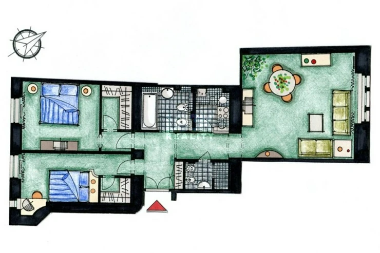 Beautiful apartment near the metro station Karlovo namesti. We offer for rent a beautiful 3+1 apartment with an area of 87 m2, located on the 3rd floor of a building with an elevator on Odborů Street. The apartment is rented fully furnished and consists of a dining room/living room, kitchen, 2 bedrooms, 2 bathrooms, and 2 walk-in closets. Entrance hall with built-in wardrobe. The kitchen is equipped with all appliances. There is a walk-in closet in each bedroom. There is a bathtub, toilet, and bidet in the main bathroom, and a shower, toilet, and bidet in the second bathroom. The house is located in an area with excellent transport links. A few minutes' walk away is the Karlovo namesti metro station (line B) and tram stop (trams 3, 8, 10, 16, 18, 22) and the Myslikova tram stop (trams 5, 12, 20). All civic amenities in the vicinity. A range of restaurants, bars, shops, schools, and medical facilities. The proximity of the popular Quadrio and Maj shopping centers is an advantage. The large Karlovo namesti park is also nearby—a place suitable for walks or sports. Beautiful living, we recommend.