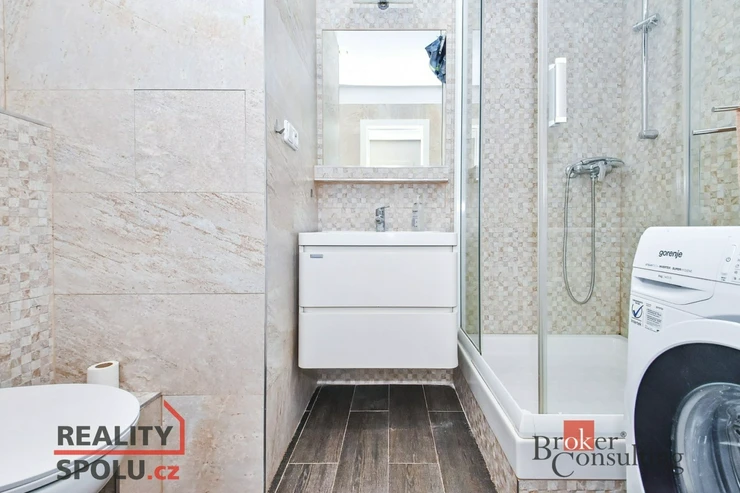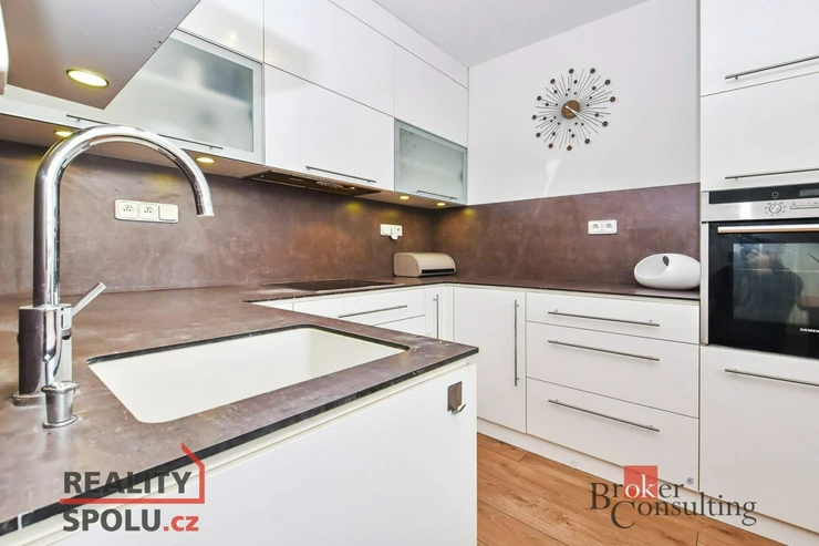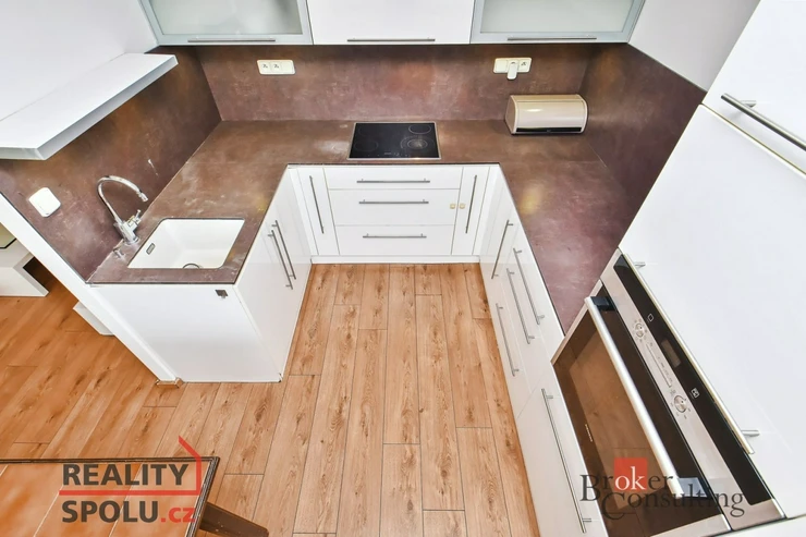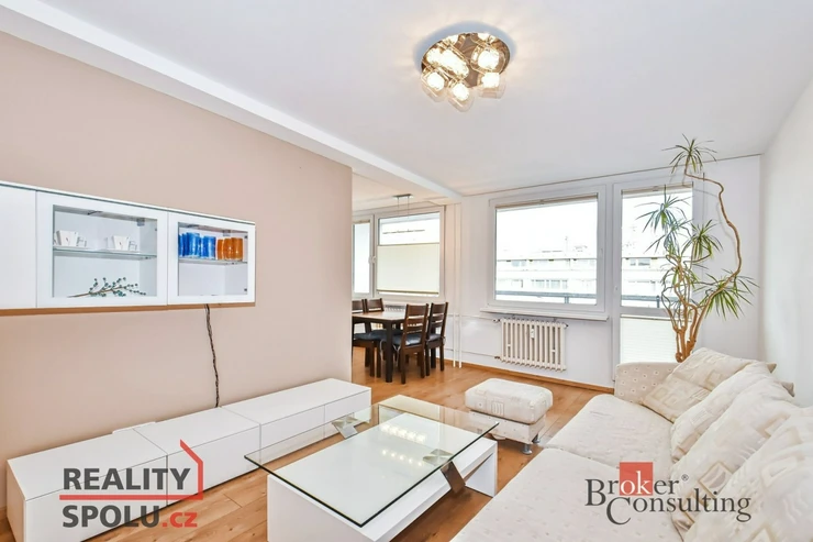 Byt je částečně vybavený – kuchyňská linka, sedací souprava, jídelní stůl, vestavěné skříně. Podlahy jsou plovoucí, byt je ve velmi dobrém stavu.