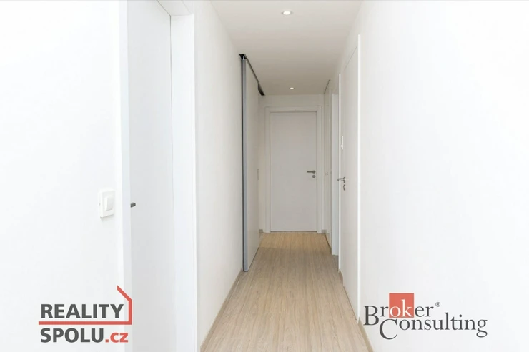 Byt disponuje dvěma neprůchozími pokoji – jeden z nich má vlastní vstup na terasu a druhý je vybaven vestavěnou skříní. V bytě nechybí prostorná předsíň, kde najdete botník, věšák a další vestavěnou skříň. Koupelna je moderní a vybavena vanou, sprchovým koutem a světlými obklady. Samostatné WC a technická místnost se nachází také v předsíni, kde je přípojka na elektřinu a odvod vody.