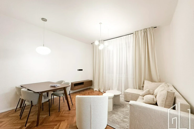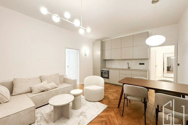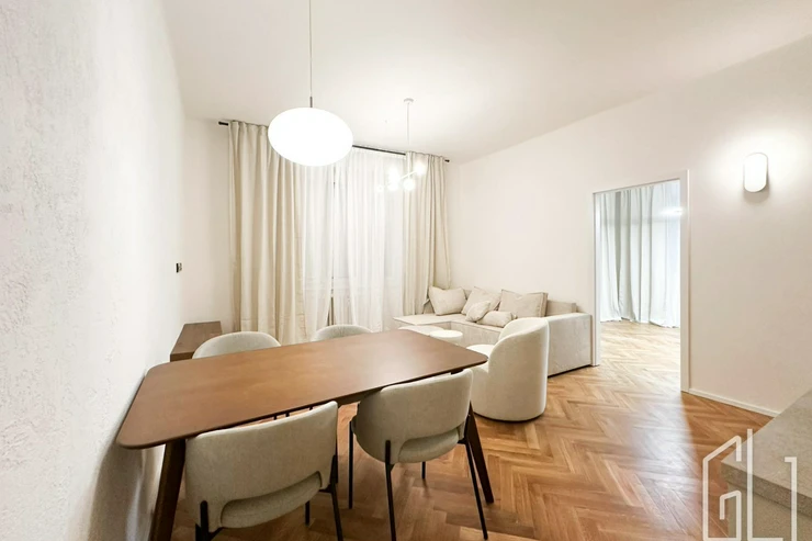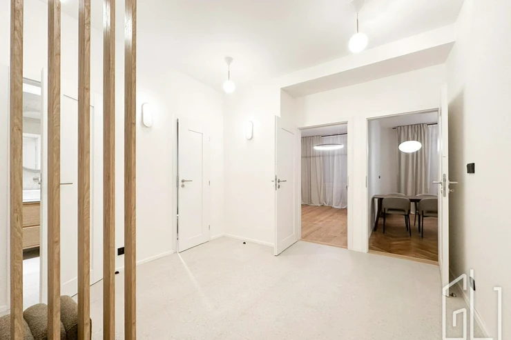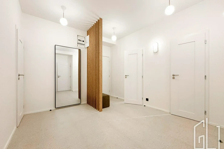 Byt prošel kompletní a náročnou rekonstrukcí, během které byly provedeny nové rozvody elektřiny, vody, topení i kanalizace. Interiér byl navržen s důrazem na detail, funkčnost a nadčasový design. Podlahy tvoří kvalitní dřevěná podlaha, byt je doplněn designovým osvětlením s dálkovým ovládáním.