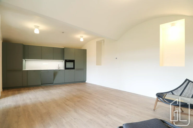 Ateliér nabízí variabilní prostor s možností uspořádání obývací části a ložnice, plně vybavenou kuchyňskou linku, koupelnu se sprchovým koutem a samostatné WC. Podlahové vytápění a rekuperace zajišťují komfortní bydlení po celý rok. Velkým benefitem je prostorná předzahrádka 25 m2, která nabízí ideální místo pro relaxaci, posezení nebo drobné zahradničení.