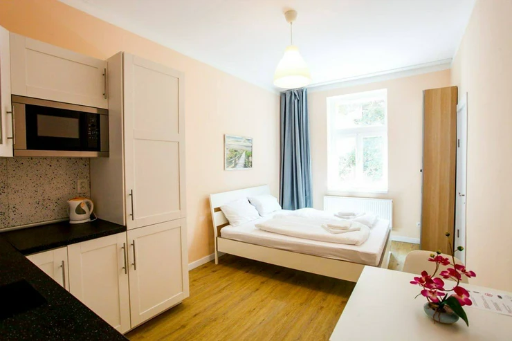 We offer for rent a bright apartment 1+kk in Žižkov near the metro station Jiřího z Poděbrad and tram stop Viktoria Žižkov.