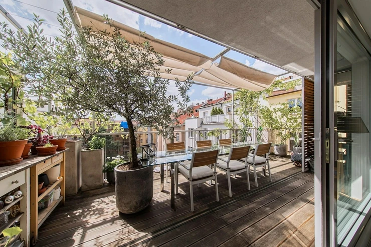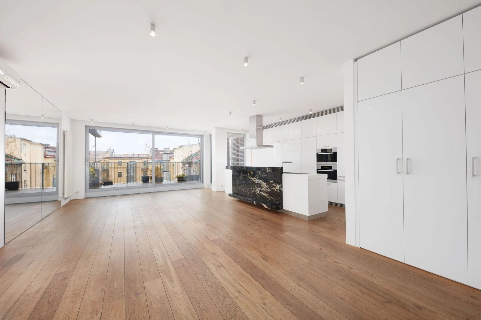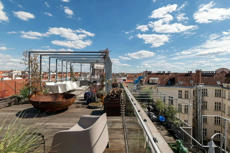 We are offering for rent an exceptional three bedroom duplex apartment with a total living area of 260.5 sqm and three terraces with a combined area of 193.5 sqm. The apartment is situated on the 5th floor of a fully renovated building in the highly sought-after residential district of Prague -Vinohrady. The highlight of the property is the stunning rooftop terrace with beautiful views of the iconic Church of the Most Sacred Heart of Our Lord overlooking Jiřího z Poděbrad Square.
