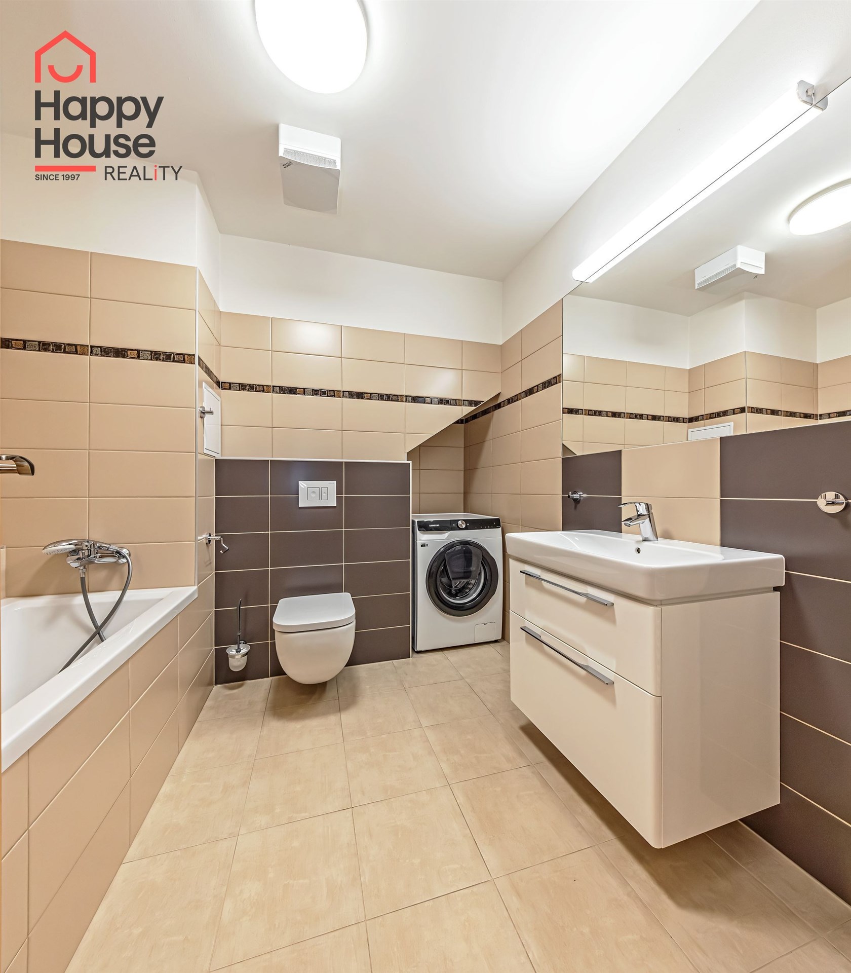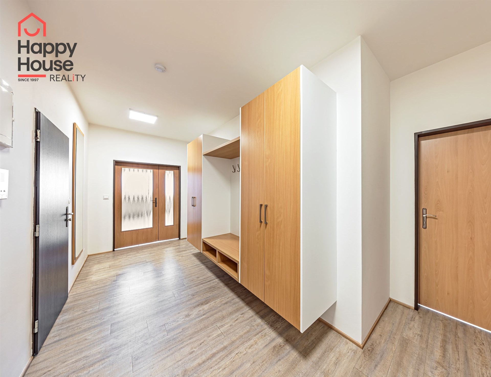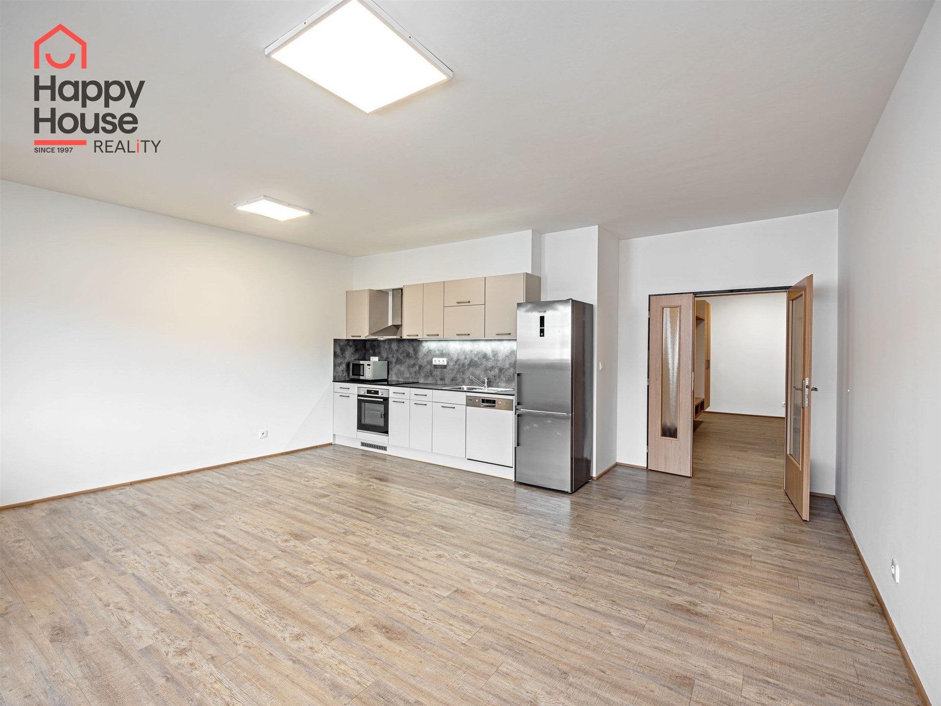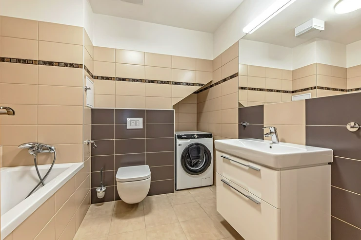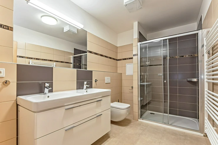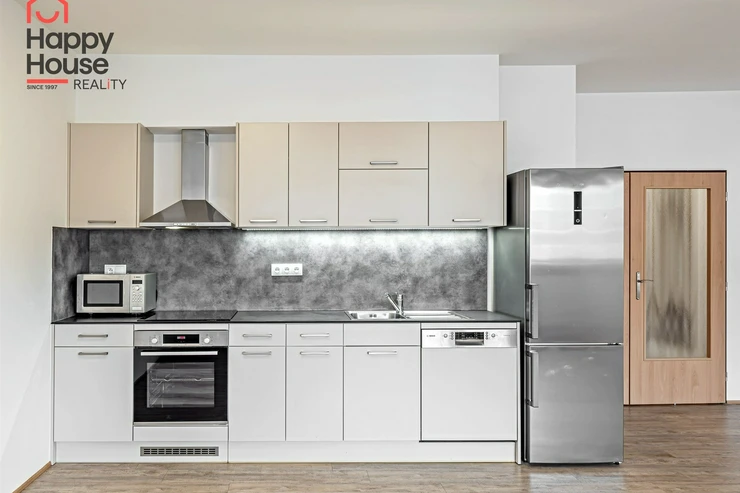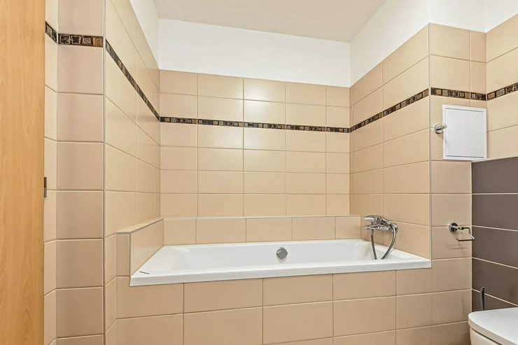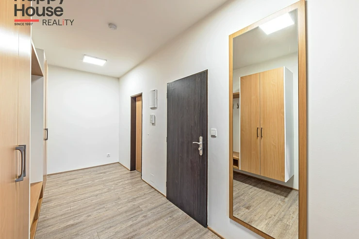 The floors are laminate and the bathrooms are tiled. The heating is central - the building has a gas boiler. A cellar is available for a fee of 500 CZK, and garage parking is available for a fee of 2,000 CZK per month (it is not mandatory to rent).