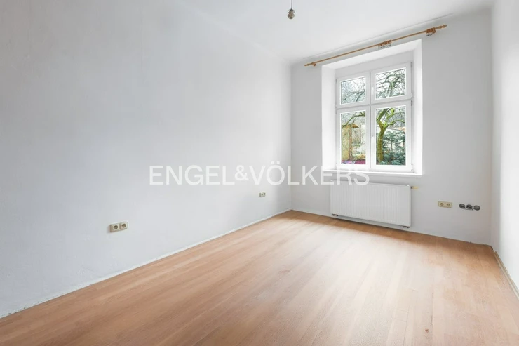 The apartment is located on the ground floor of an apartment building and offers 92 m² of floor space. The practical layout includes a spacious entrance hall with access to all rooms, two separate bedrooms, a living room connected to a fully equipped kitchen with all appliances, a bathroom with a bathtub, a separate toilet, and a utility room. The apartment has a combination of vinyl flooring and parquet. Thanks to the size of the floor area and the height of the ceilings of approx 2.9 m, the apartment feels very airy and bright.