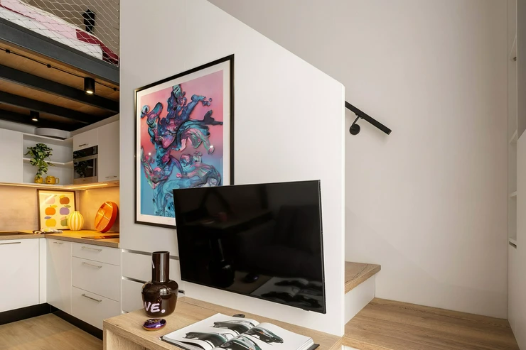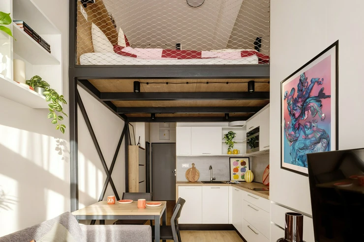 A stylish loft studio with over 3-meter-high windows feels more like your own private art gallery than just an apartment.
