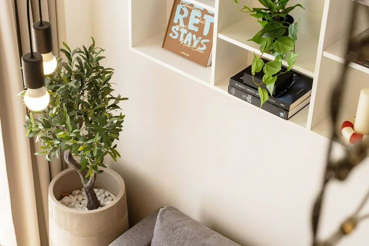 Bright, airy, and full of character. The kitchen’s got your back, whether it’s a quick coffee or dinner with a friend, it’s ready for action. Living area? Chill zone activated. Comfy couch, TV, all set for downtime.