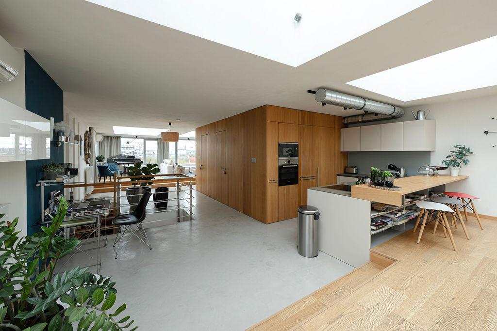 Byt se nachází v nejvyšším podlaží domu a nabízí dechberoucí výhled na Prahu, maximální soukromí a nadstandardní prostor pro komfortní bydlení i reprezentaci. Dispozice zahrnuje velkorysou obytnou část s plně vybavenou designovou kuchyní značky Bulthaup včetně kvalitních vestavěných spotřebičů. Součástí vybavení je také pračka a vestavěné skříně. Interiér je proveden ve vysokém standardu s důrazem na kvalitu materiálů a nadčasový design.