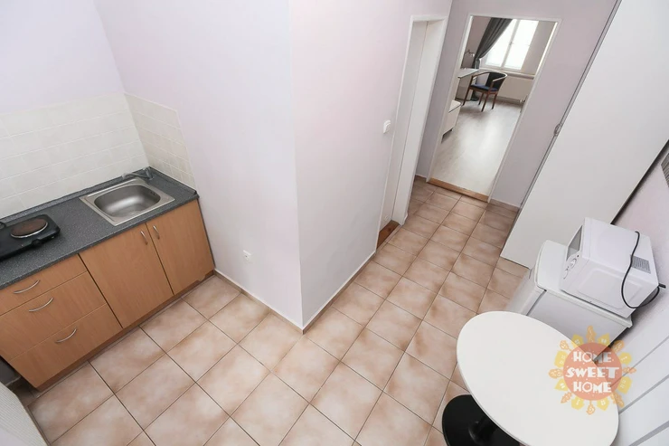 Beautiful fully furnished apartment for rent, ideal for student accommodation, 1+1 (29m2) is located on the first floor of a brick building in the street Cimburkova, Prague 3, Zizkov. The kitchen has a fridge, microwave oven, electric hob and basic kitchen utensils. There is a single bed, desk and wardrobe. The bathroom has a shower, toilet. The house has a laundry room and terrace. Internet connection included in the price.