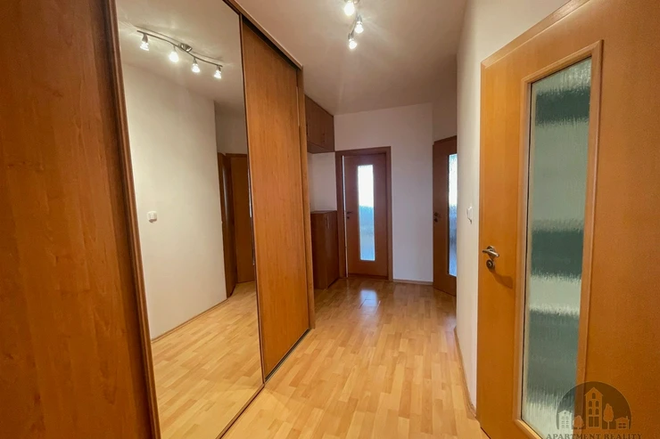 We offer for long-term rent a panel apartment on the 7th floor with an elevator, layout 3+1, 80m2, located on Daškova street in Modřany. The apartment faces two directions which ensures plenty of daylight throughout the day. The apartment has a security entry door, spacious built-in wardrobes, and is partly furnished.