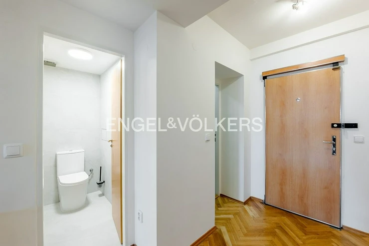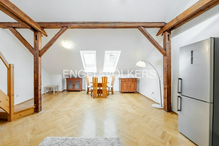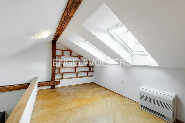 A renovated, bright apartment on the top floor of a residential building with an elevator and air conditioning is ready for immediate rent. This sunlit apartment is located in the attractive area of Holešovice with excellent transport accessibility. The spacious studio has undergone a recent and tasteful renovation of the bathroom and toilet and boasts modern appliances. A gallery extends over the living room, ideal for setting up a master bedroom. The apartment is partially furnished, and increased living comfort is provided by exterior blinds with remote control. A tram stop is just a 2-minute walk away, and in the vicinity, you will find complete civic amenities including restaurants, cafes, and shops.