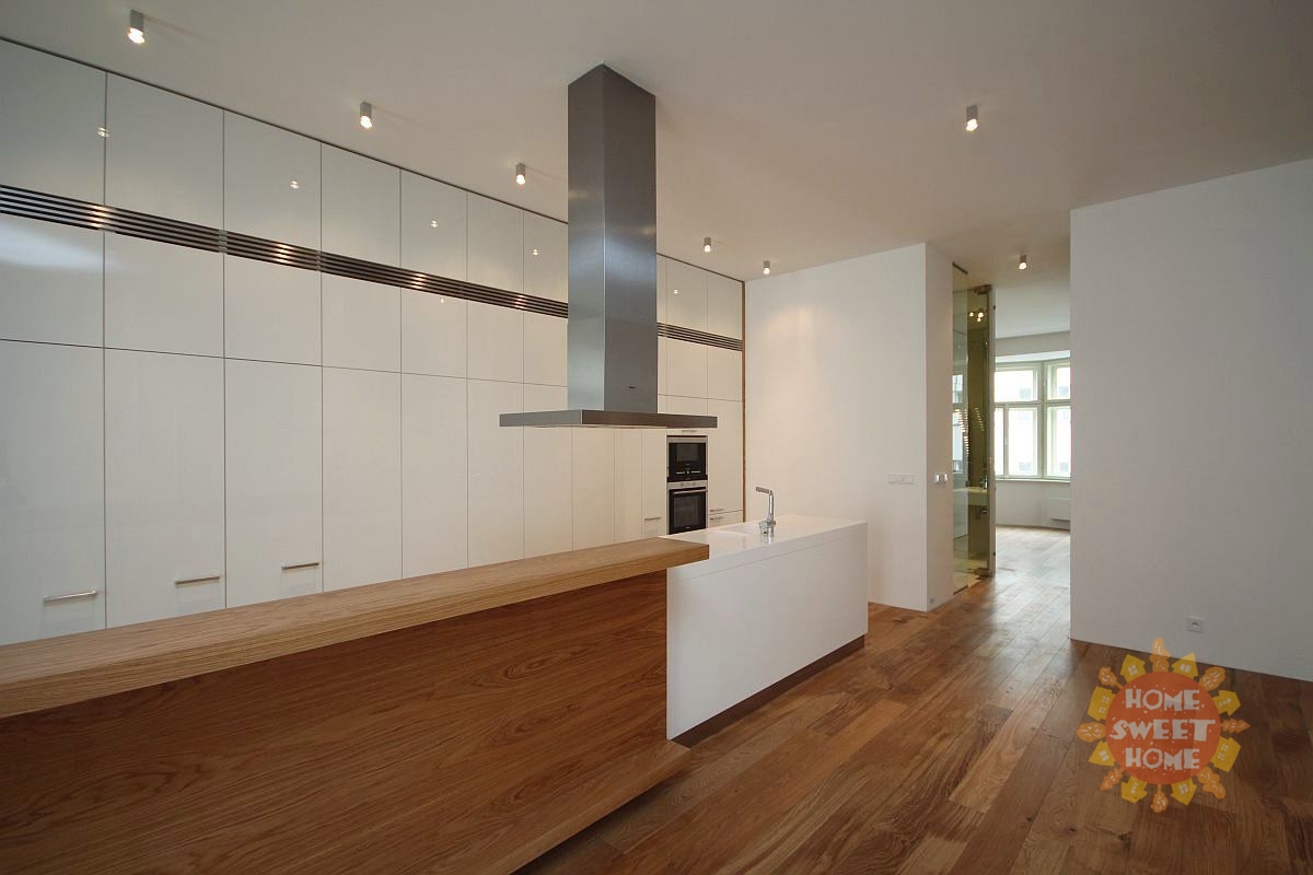 We offer for rent a modern unfurnished 3+kk apartment (116 sqm+ 18 sqm terrace), located on the second above floor of a renovated building with an elevator in a popular locality of Prague's Vinohrady, in Laubova Street.