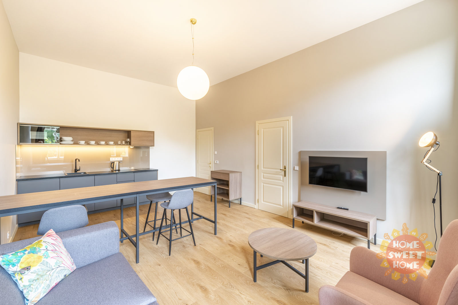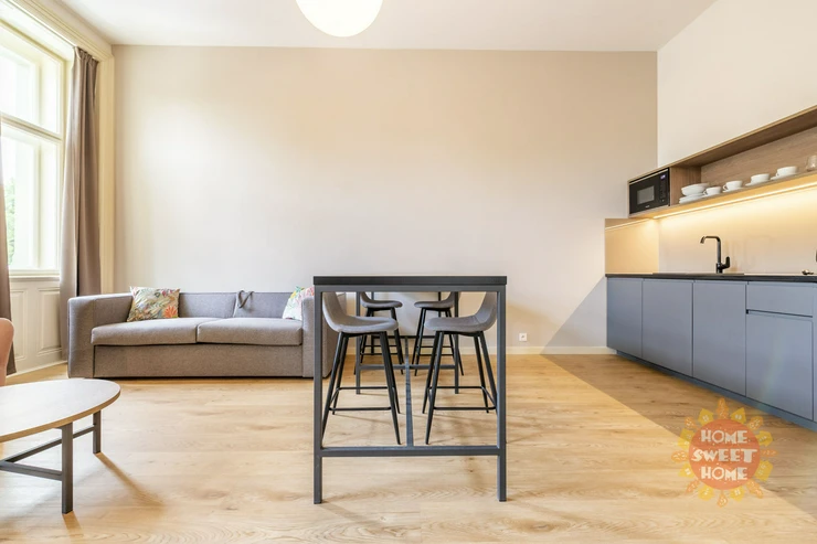 This modernly furnished 2+kk apartment, completely renovated with a total area of 43 m² with balcony, is located on the 5th floor of a brick building with an elevator, which underwent renovation in 2021. The building is located on Opletalova Street, in the attractive Nové Město district, only about 100 meters from Wenceslas Square.