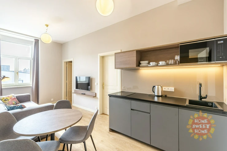 Furnished apartment 2 + kk after complete reconstruction with a total area of 33 square meters is located on the fifth floor of a brick building with an elevator in a newly renovated house from 2021 in the street Opletalova, New Town. Housing is located in a very popular location, about 100 meters from Wenceslas Square.