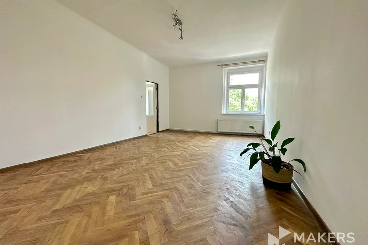 We offer for rent a beautiful, bright and very spacious 1+1 apartment with a generous total area of 70 m², located on the 2nd floor of a fully insulated brick building in the sought-after district of Žižkov (Žižkov). The apartment features a balcony and the possibility to use a private front garden.