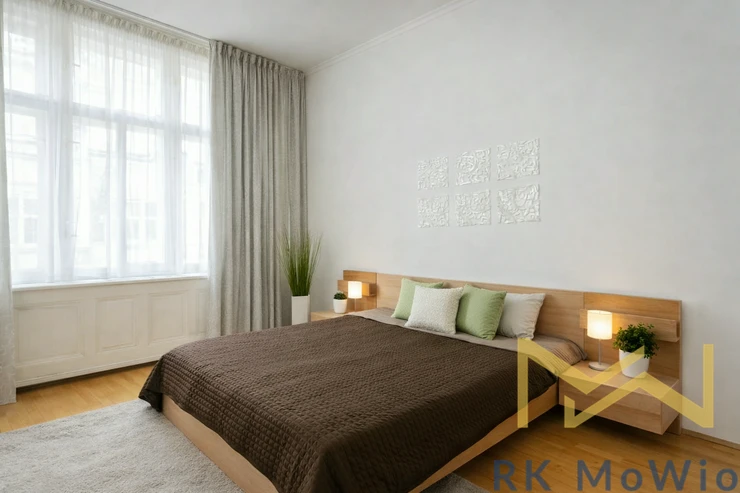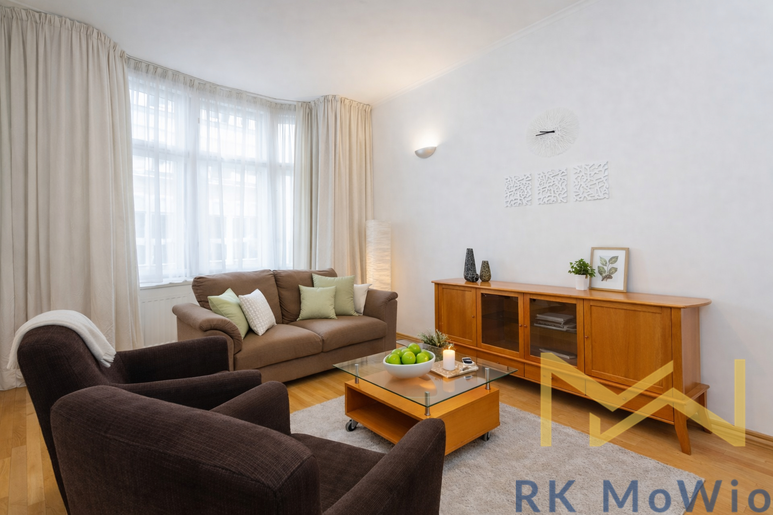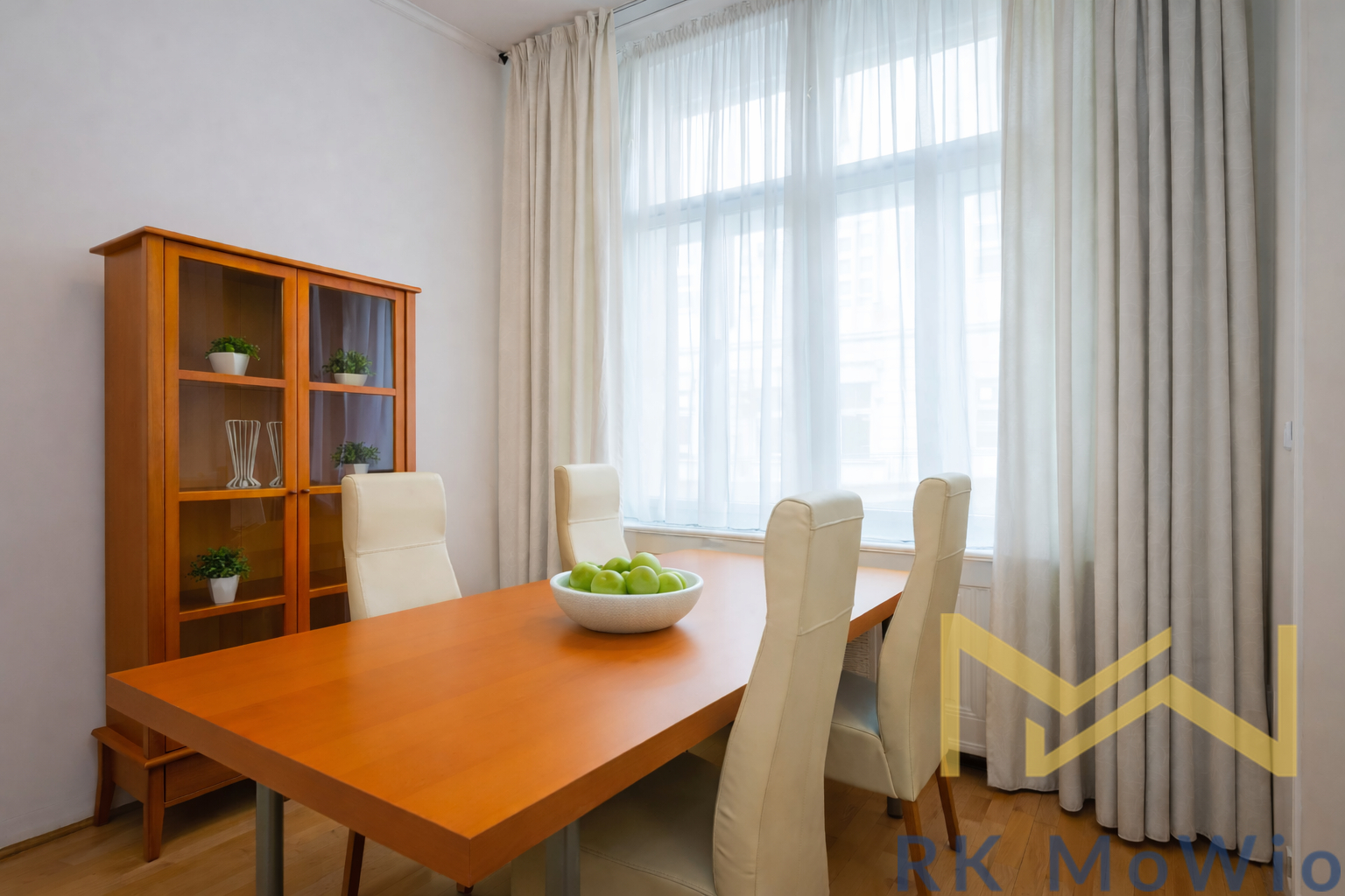 We offer for rent a furnished 2-bedroom apartment with a floor area of 98 sqm and a balcony, situated on the 2nd floor (3rd above-ground level) of an Art Nouveau building with a lift on Bílkova Street, Prague 1 – Old Town.