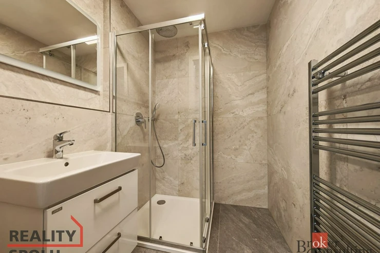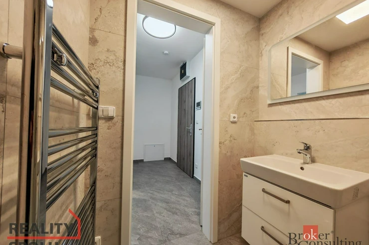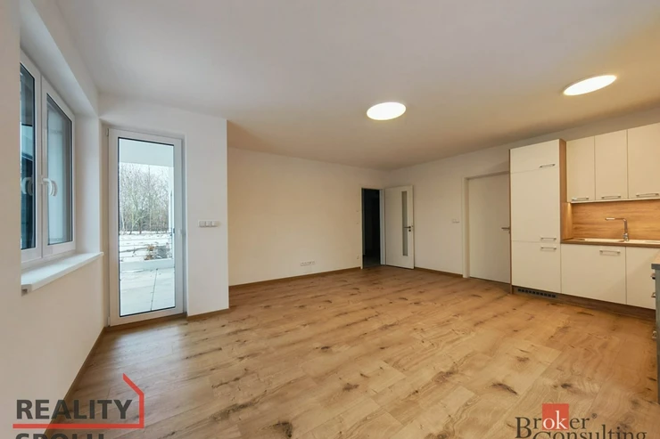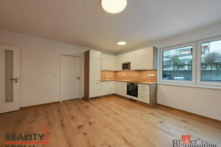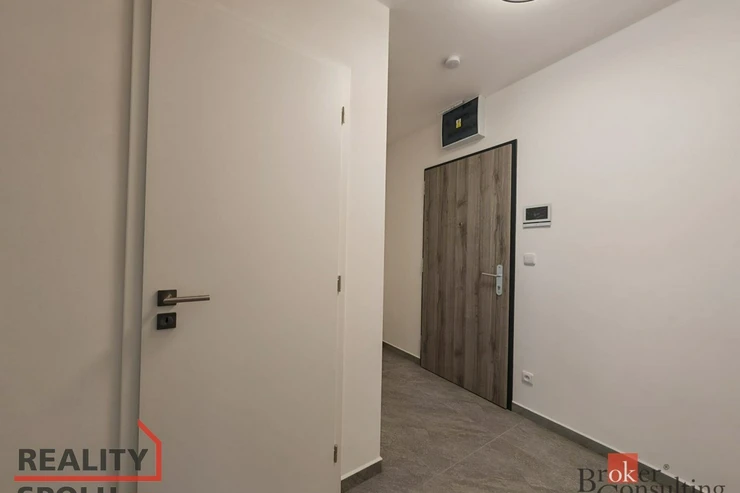 Byt se nachází v prvním nadzemním podlaží v cihlovém domě s výtahem k nastěhování ihned. Vstupní chodbou se projde do obývacího pokoje s kuchyňskou linkou a do ložnice. S chodbou přímo sousedí koupelna, která je vybavená sprchovým koutem, umyvadlem a samostatnou toaletou. Vytápění a ohřev vody je řešen dálkově.