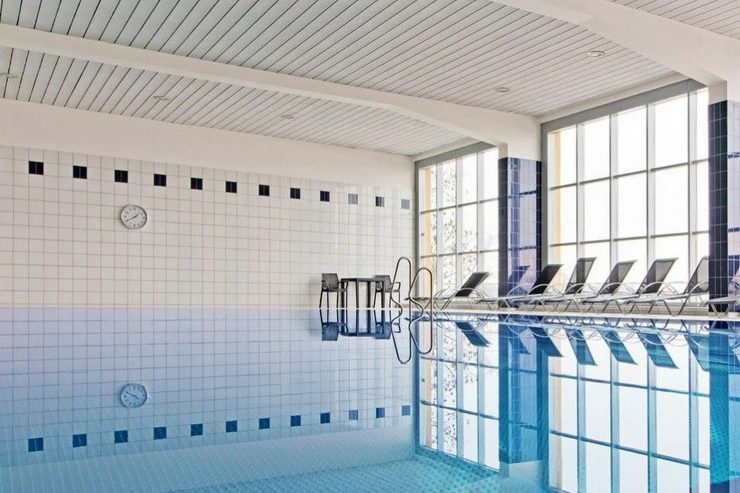 The overall equipment includes a kitchen with equipment and all appliances, living room, TV, new sofa, library, bedroom with wardrobes, new bed and bedside tables, wooden floors, tiled floors in the entrance hall and bathroom, custom-made built-in wardrobes, separate gas boiler. Camera system and security. Ka spacious indoor swimming pool for residents with a summer terrace for sunbathing!