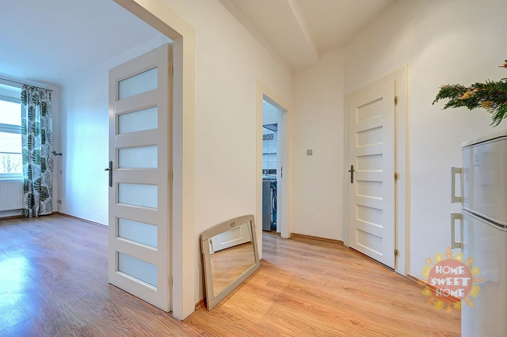 We offer for rent a beautiful unfurnished apartment 1 + 1 with an area of 42 m2 located on the fourth floor of a brick building with an elevator and a balcony (5 m2) overlooking a quiet courtyard, in the street Národní obrany, Prague 6 - Bubeneč. The layout of the apartment offers an entrance hall with intercom and access to other rooms, to the left of the entrance there is a room that can be used as a living room with a bedroom, there is a fully equipped kitchen with pantry and access to a spacious balcony overlooking a quiet courtyard. the kitchen has a brand new gas stove with an electric oven, hood, refrigerator (in the hallway), plenty of storage space. The bathroom has a shower, toilet, heating ladder and there is a washing machine. The rooms have cornices and curtains.