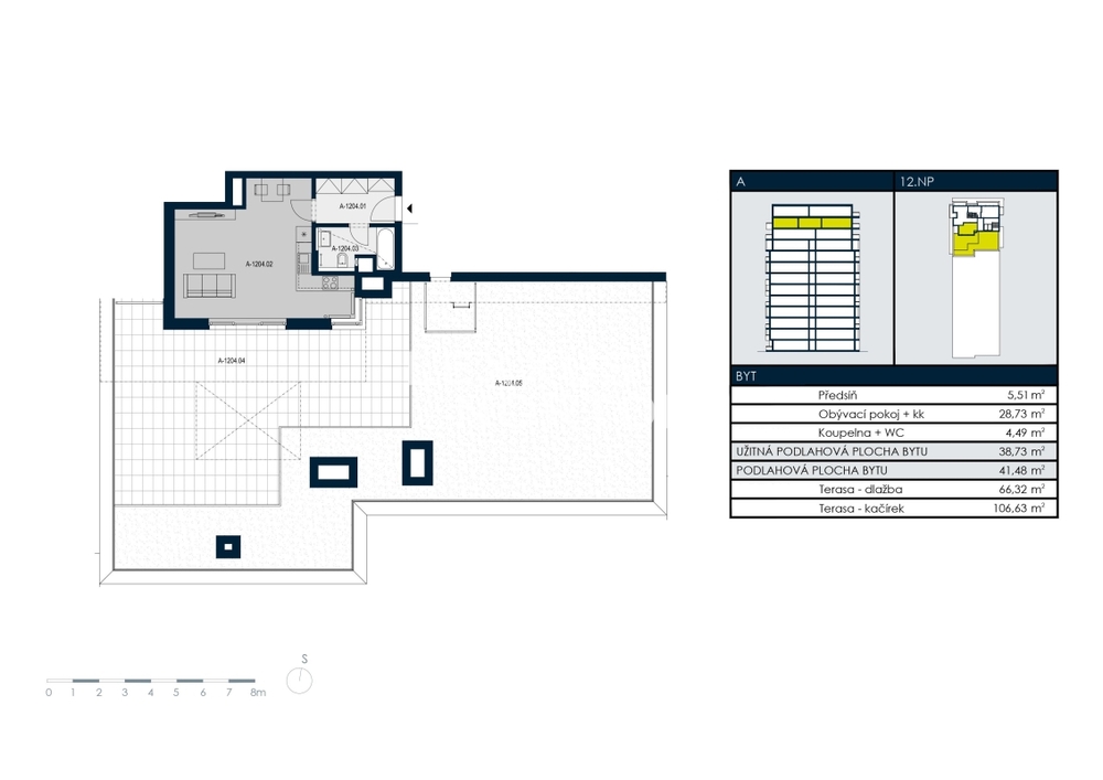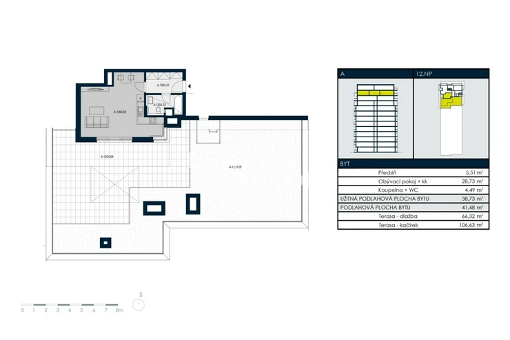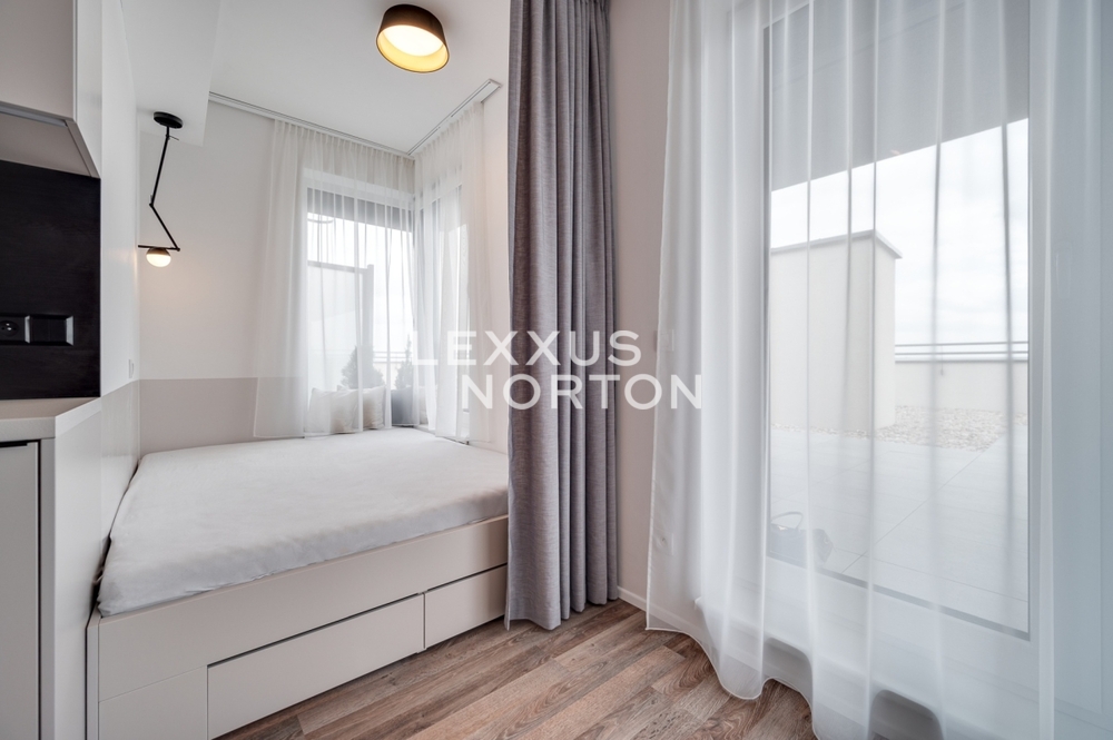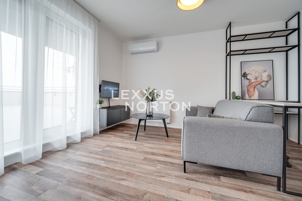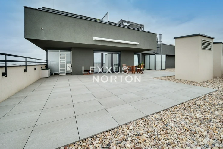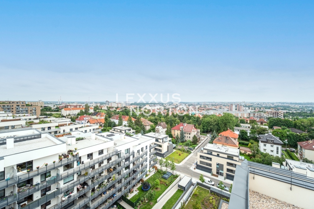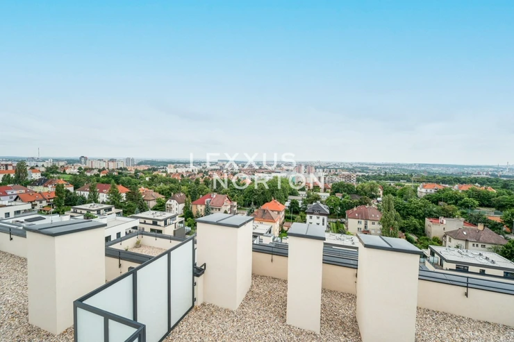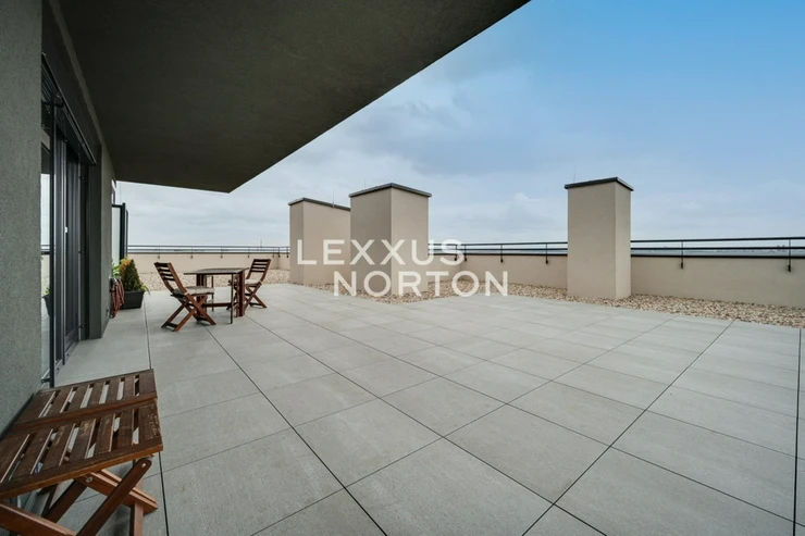 We offer for rent a modernly furnished one-room apartment with an area of 39 sqm with an impressive roof terrace of 173 sqm, which is part of the Tulipa Trebesin residential project in a quiet location in Prague 3 - Strasnice. The location is also attractive thanks to its proximity to Malesicky Park.This bright, furnished studio with an area of 39 sqm, located on the 12th floor of a building with an elevator, has an airy living room (29 sqm) with a designer kitchenette, a separate bedroom area, and access to a unique 173 sqm roof terrace. The apartment also has a modern bathroom and an entrance hall.The layout of the apartment includes an entrance hall with built-in wardrobes, a kitchenette equipped with a ceramic hob, oven, refrigerator with freezer, dishwasher, and microwave, and a bathroom with a bathtub and washing machine. The bedroom area is located separately from the main living area. The apartment is also equipped with air conditioning, an electric fireplace, an electric awning, and outdoor blinds.A district with good transport links, consisting of houses, as well as some apartment buildings. The location has tram and bus stops. Zelivskeho metro station is 2 minutes away by public transport You can reach the city ring road in 6 minutes, Vaclav Havel Airport in 42 minutes and Atrium Flora shopping and entertainment centre in 4 minutes by car. You will find all civic amenities in the vicinity - kindergartens, primary and secondary schools, a grammar school, pharmacies, a medical centre, restaurants, supermarkets, children’s playgrounds and a post office. For leisure activities you can use the nearby sports hall, swimming pool, football pitches, volleyball courts, tennis courts, jump park and bowling alley. You can go for a walk in Malesice Park or cycle through Malesice Woods.An interested client is aware of the need to pay a commission totalling one month's rent plus VAT.If you are unable to view the property in person, we also offer a real-time video tour from the comfort of your home via Messenger, WhatsApp, and other communication platforms.