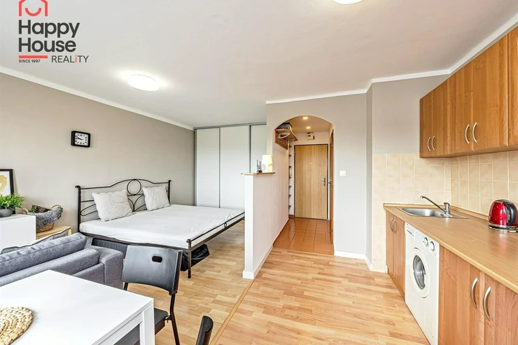 Exklusivně nabízíme k dlouhodobému pronájmu zařízený byt 1+kk o velikosti 29 m2 v 9. patře panelového domu s výtahem v klidné části Prahy 9 Hloubětíně. V kuchyňském koutě se nachází linka, lednice s mrazničkou, sklokeramická deska, elektrická a mikrovlnná trouba, pračka, stůl a 3 židle. V koupelně je sprchový kout a toaleta. Dále postel s novými rošty a matracemi, vestavěná skříň a nové vstupní dveře. Ostatní zařízení na fotkách je pouze ilustarční. Laminátová plovoucí podlaha a dlažba. Centrální vytápění. Internetové připojení k dispozici. Veřejné parkování bez zón. Z bytu je nádherný výhled na starý Hloubětín a lesopark Lehovec