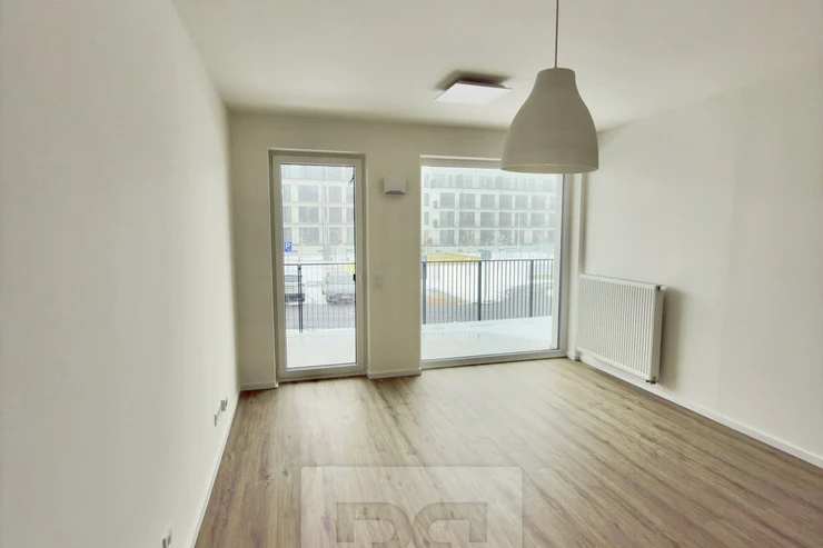 We offer for rent a 2+kk apartment with a living area of 51 m², located on the 1st floor of a new building with an elevator, in Ke Křížku Street. The apartment consists of an entrance hall with a built-in wardrobe, a bathroom with a shower and a toilet, a living room with a kitchenette equipped with built-in appliances including a dishwasher and a bedroom. From the bedroom and the living room you can enter the 17 m² terrace. The apartment has a garage and a cellar.