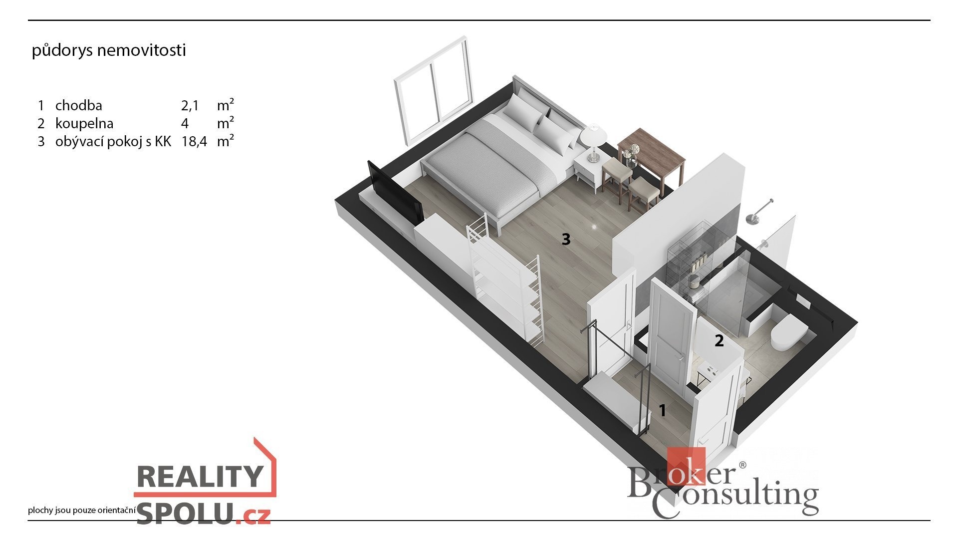 Byt o ploše 28,7 m², který je vhodný pro jednotlivce, je nově vymalovaný a připravený k okamžitému nastěhování. K bytu náleží komora umístěná na patře, která poskytuje dostatek úložného prostoru mimo byt. Kuchyňská linka je vybavena indukční varná deska, digestoří a lednicí s mrazákem.