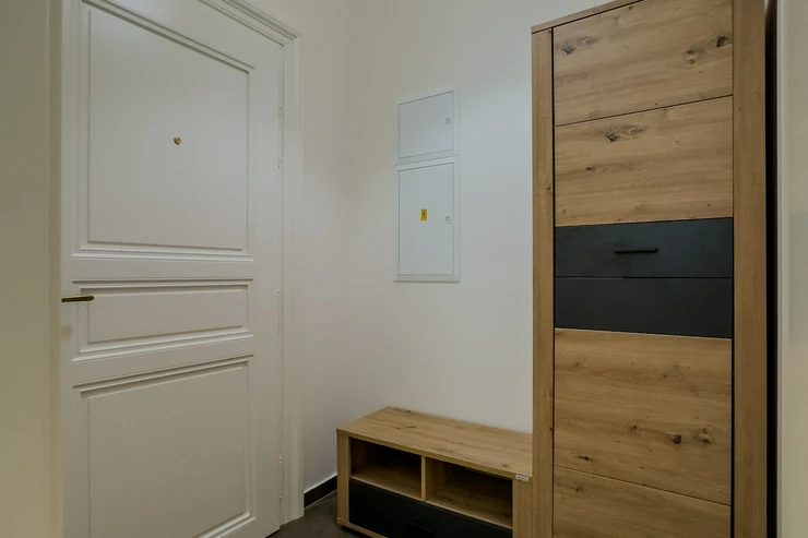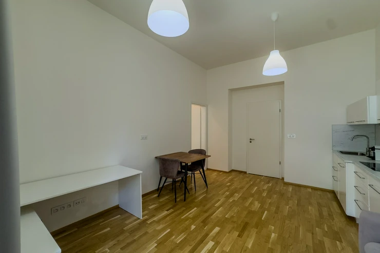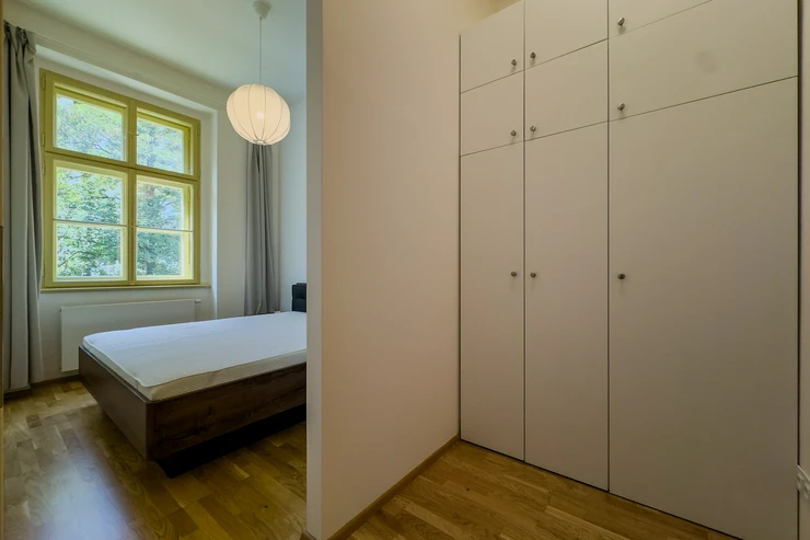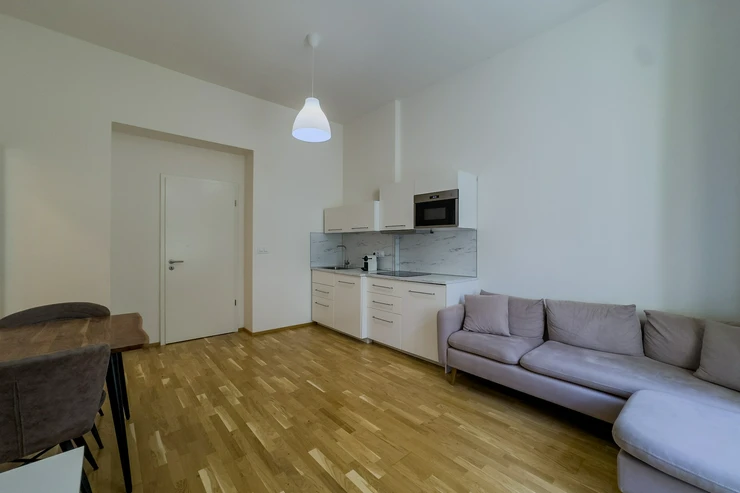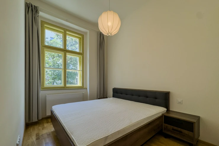 We exclusively offer for long-term rent a beautiful fully furnished 2+kk apartment with a total area of 42 m², located on the 2nd above-ground floor of a fully renovated historic building in the center of Prague. The apartment’s windows face a quiet inner courtyard.