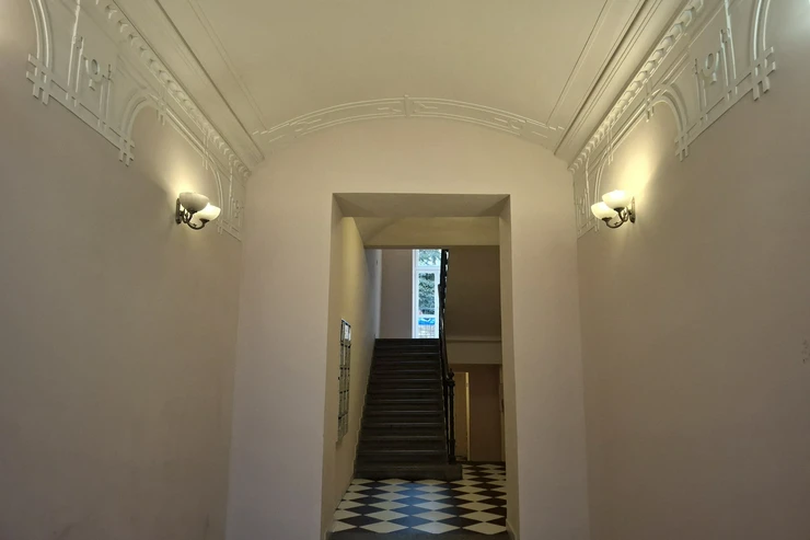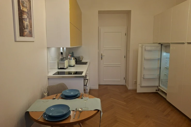 We are pleased to offer for long-term rent a stylish apartment in a historic Neo-Renaissance building from the late 19th century, located at Náměstí Bratří Synků. This 1+kk (studio) apartment with a living area of 23 m² is situated on the 1st floor (2nd above-ground level) of a building with an elevator.