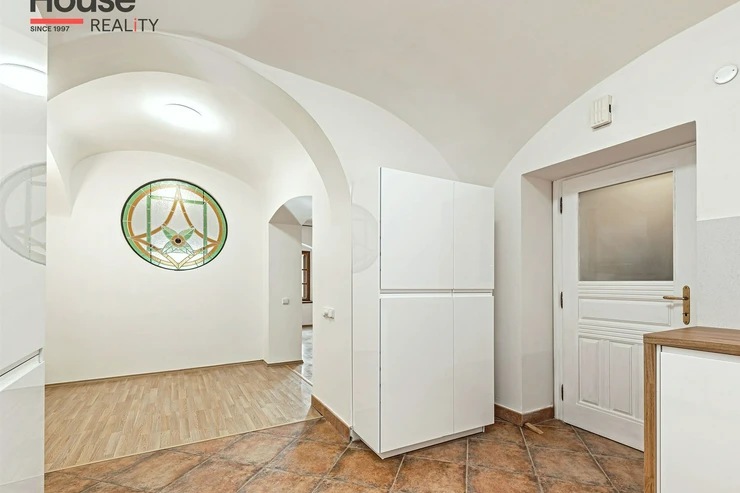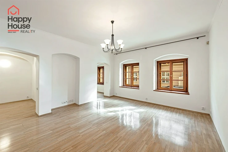 We offer a long-term rental of a one-bedroom apartment with an area of 75 sqm on the ground floor of a brick house in a quiet street near Prague Castle in Prague 1, Hradčany.