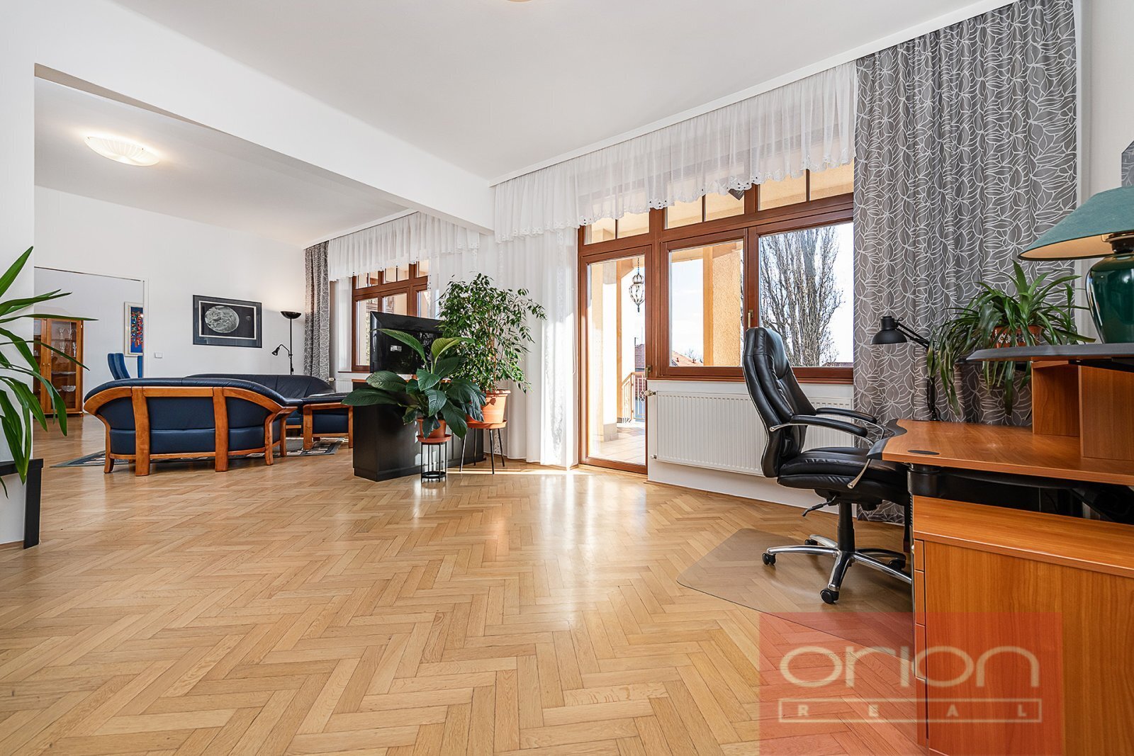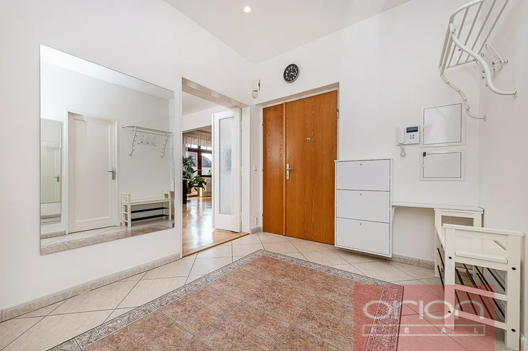 We offer for rent a spacious, fully furnished apartment with a total area of 131 m² and a 21 m² terrace, situated on the 2nd floor of a residential villa with a beautiful garden in the prestigious Hanspaulka villa district, in the sought-after area of Prague 6 – Dejvice.