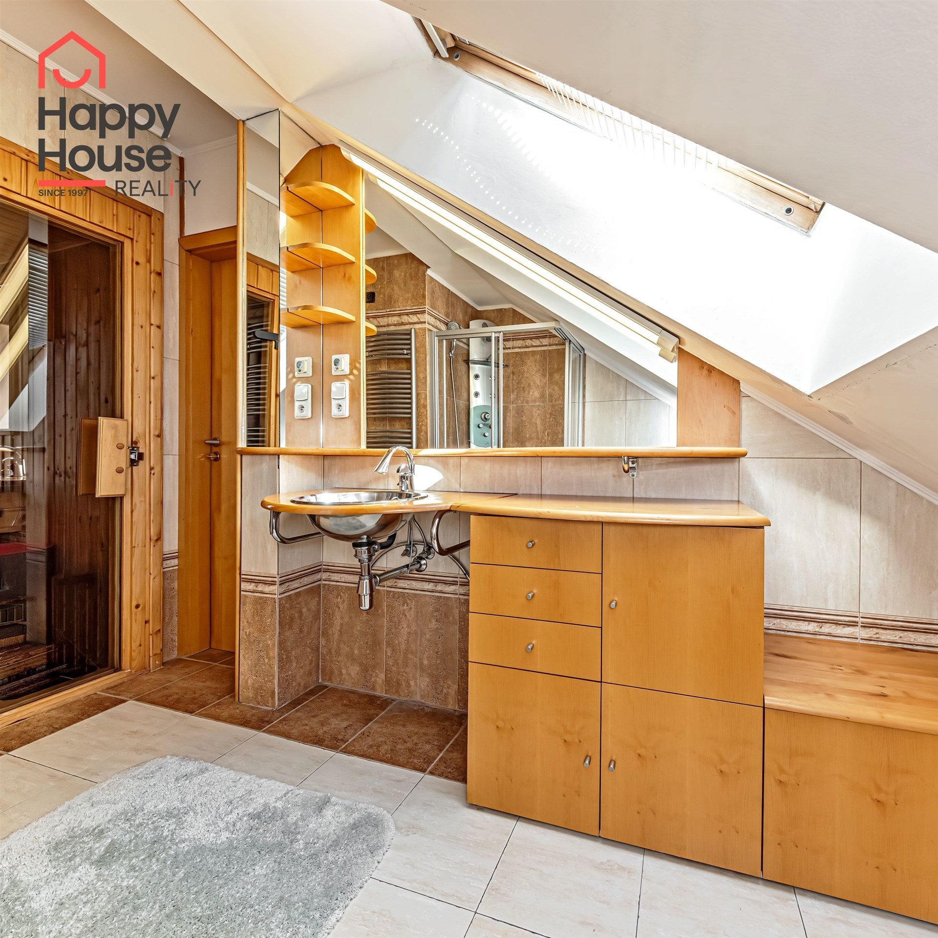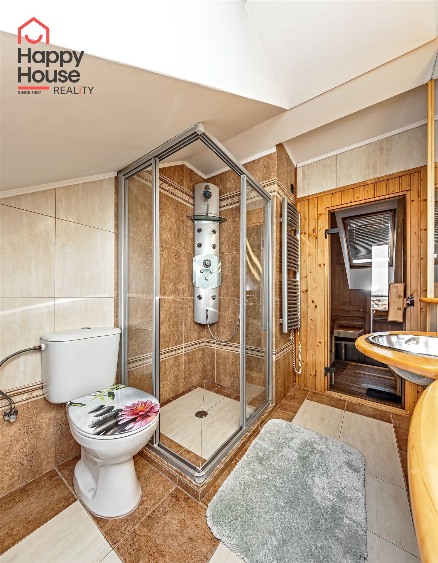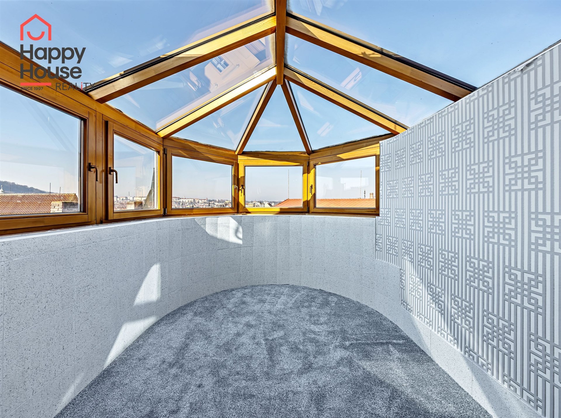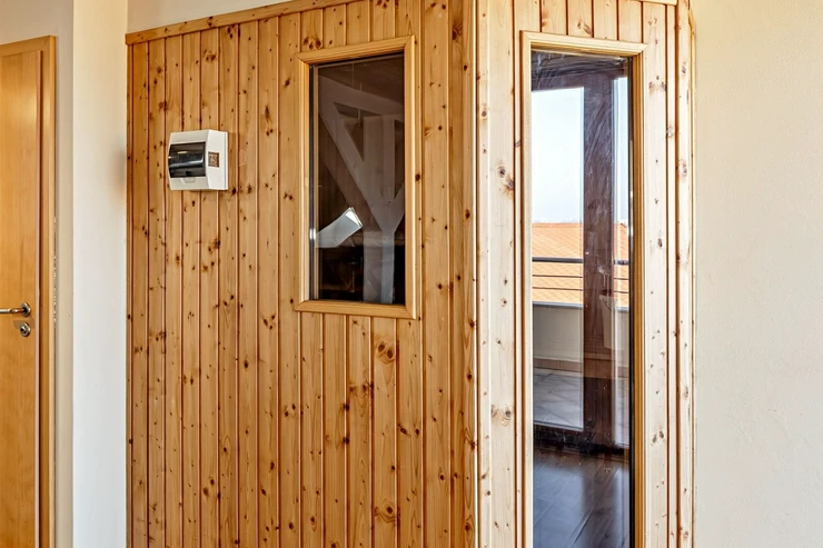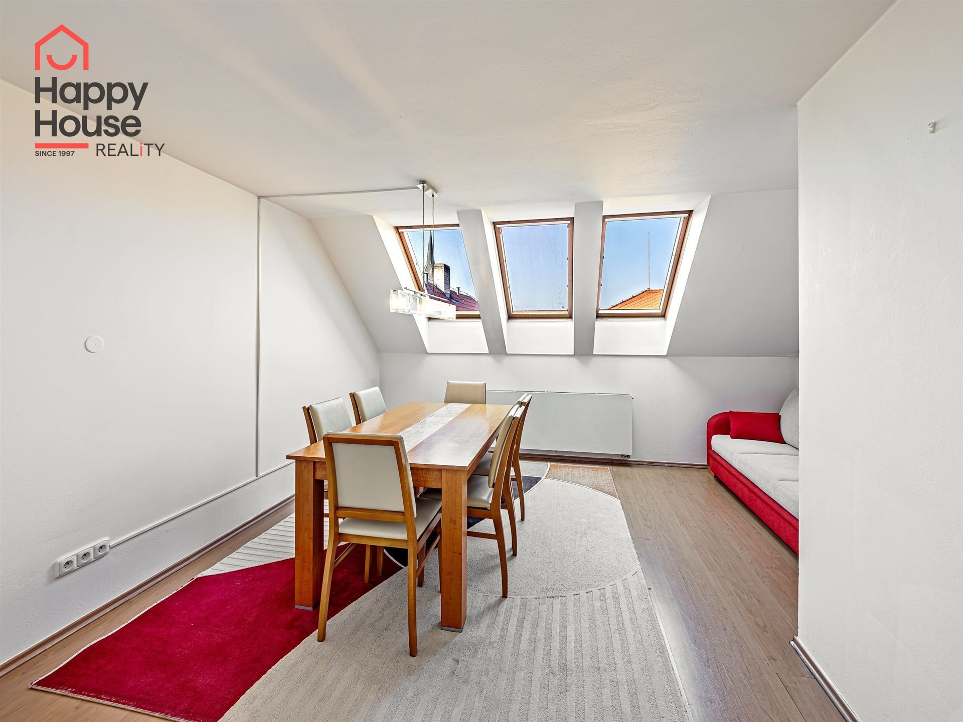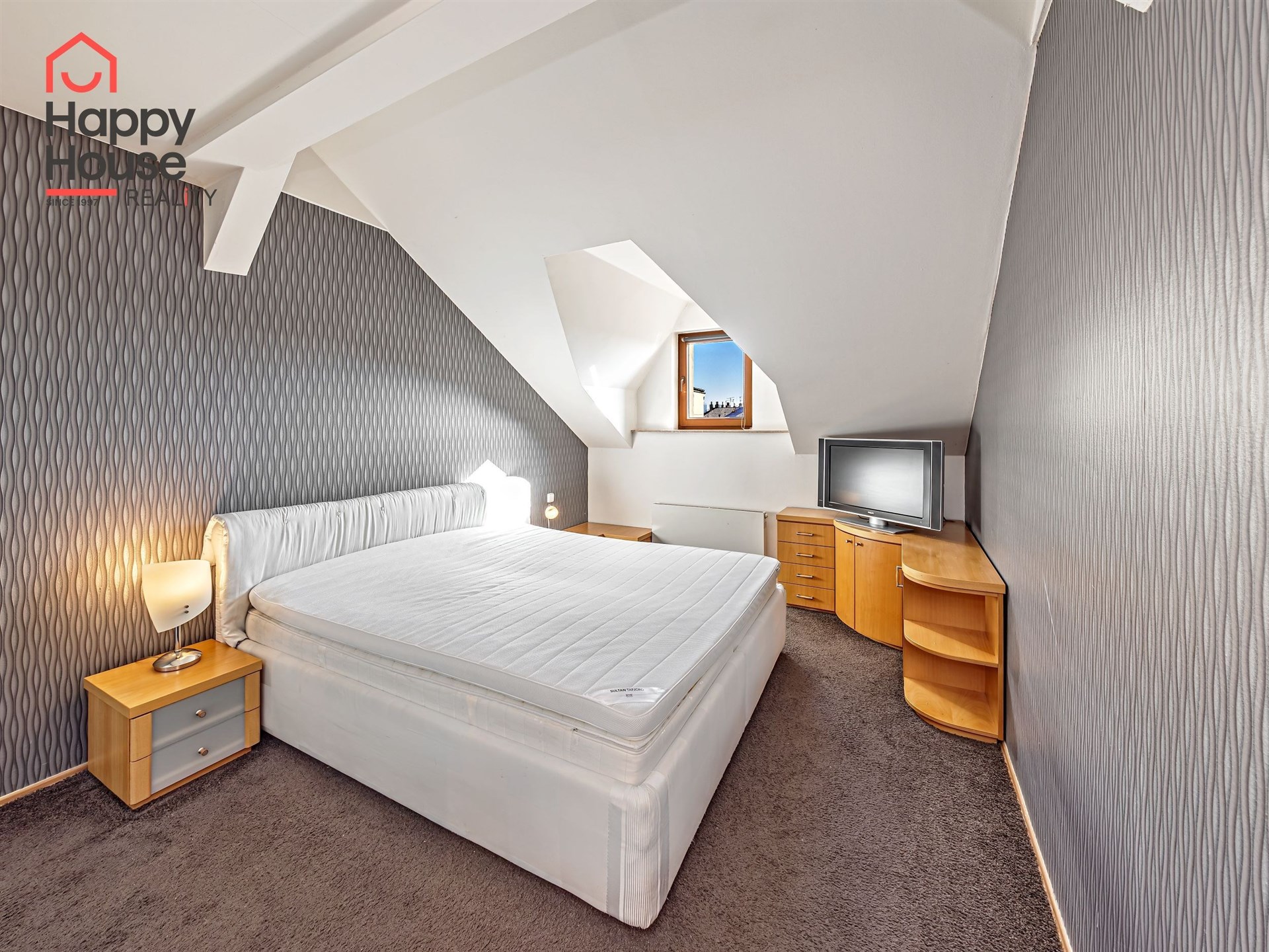 We offer for rent a luxurious, spacious, attic, duplex two-bedroom apartment with a terrace on the 6th floor of a brick building with an elevator in a prestigious location in Prague 2, New Town. The apartment is fully equipped and features an entrance hall, a living room with a kitchenette, a dining area with a fireplace, 2 bedrooms, two bathrooms, a separate toilet, as well as a sauna and a room with a glass ceiling. The kitchenette includes a kitchen unit with built-in appliances - fridge with freezer, ceramic hob, electric and microwave oven, extractor hood, and dishwasher. One bathroom has a massage shower and toilet, and the other has a bathtub, washing machine, and toilet. The terrace offers a beautiful view of Prague Castle and Petřín. Laminate floating floors, tiling. Telephone connection, cable TV, and internet available. Central gas heating. Street parking - zones.