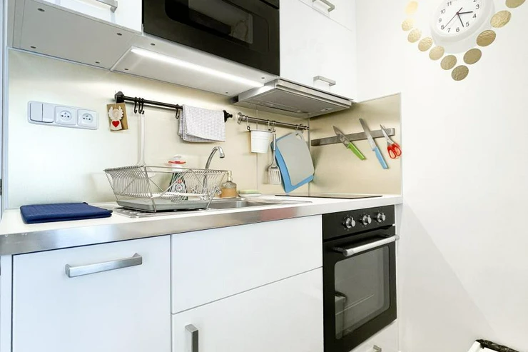 Kuchyň je vybavena varnou deskou, lednicí, mikrovlnkou, myčkou a kompletním nádobím.