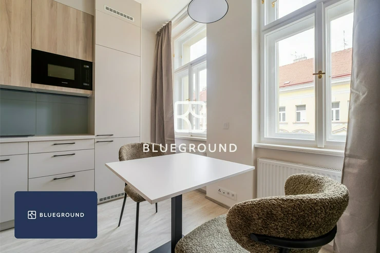 Blueground offers a fully furnished and equipped 2kk apartment in the quiet Nusle district of Prague 4, available for stays of one month or longer. The apartment is located in a peaceful residential area with quick access to the city center. With nearby parks, cafés, and local spots to explore, this apartment is an excellent choice for professionals or couples seeking a quiet, comfortable, and well-connected place to call home.