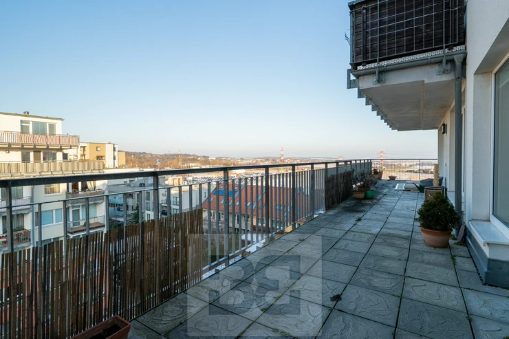 We offer for rent a spacious and bright 3+kk apartment with a total area of 70 m², featuring an exceptionally large terrace of 60 m². The apartment is located on the 6th floor of a modern, well-maintained and insulated building from 2006, developed by the renowned developer FINEP, on Zakšínská Street.