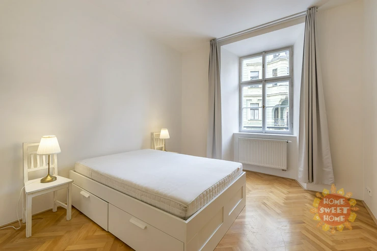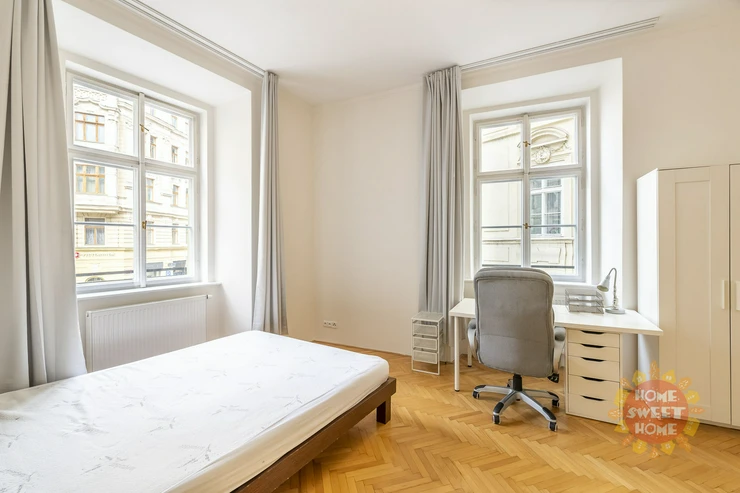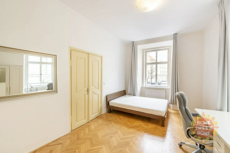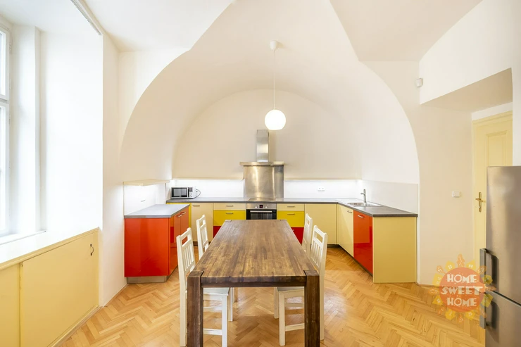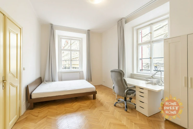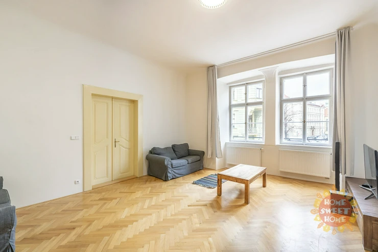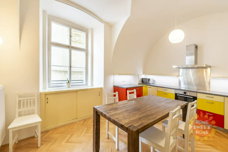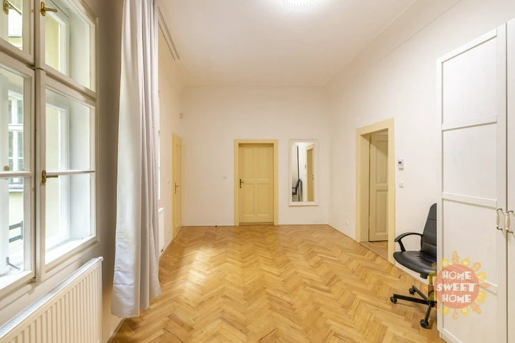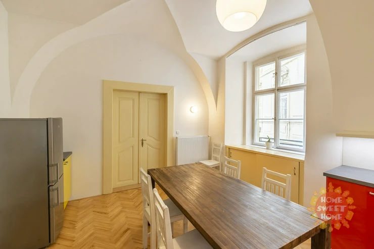 Beautiful, spacious, partly furnished apartment 3+1 (117 sqm) is located on the second floor of a brick house in a perfect location - Tynska street, Prague 1 - Old Town.