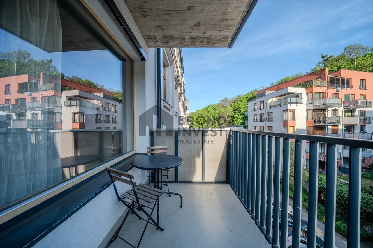 We offer for rent a modern, bright 2+kk apartment with a terrace in a new building near Anděl.